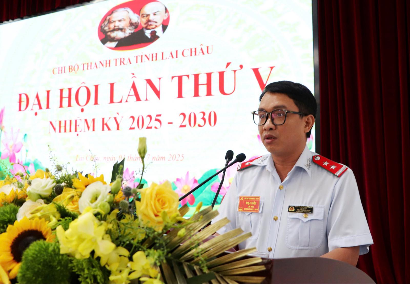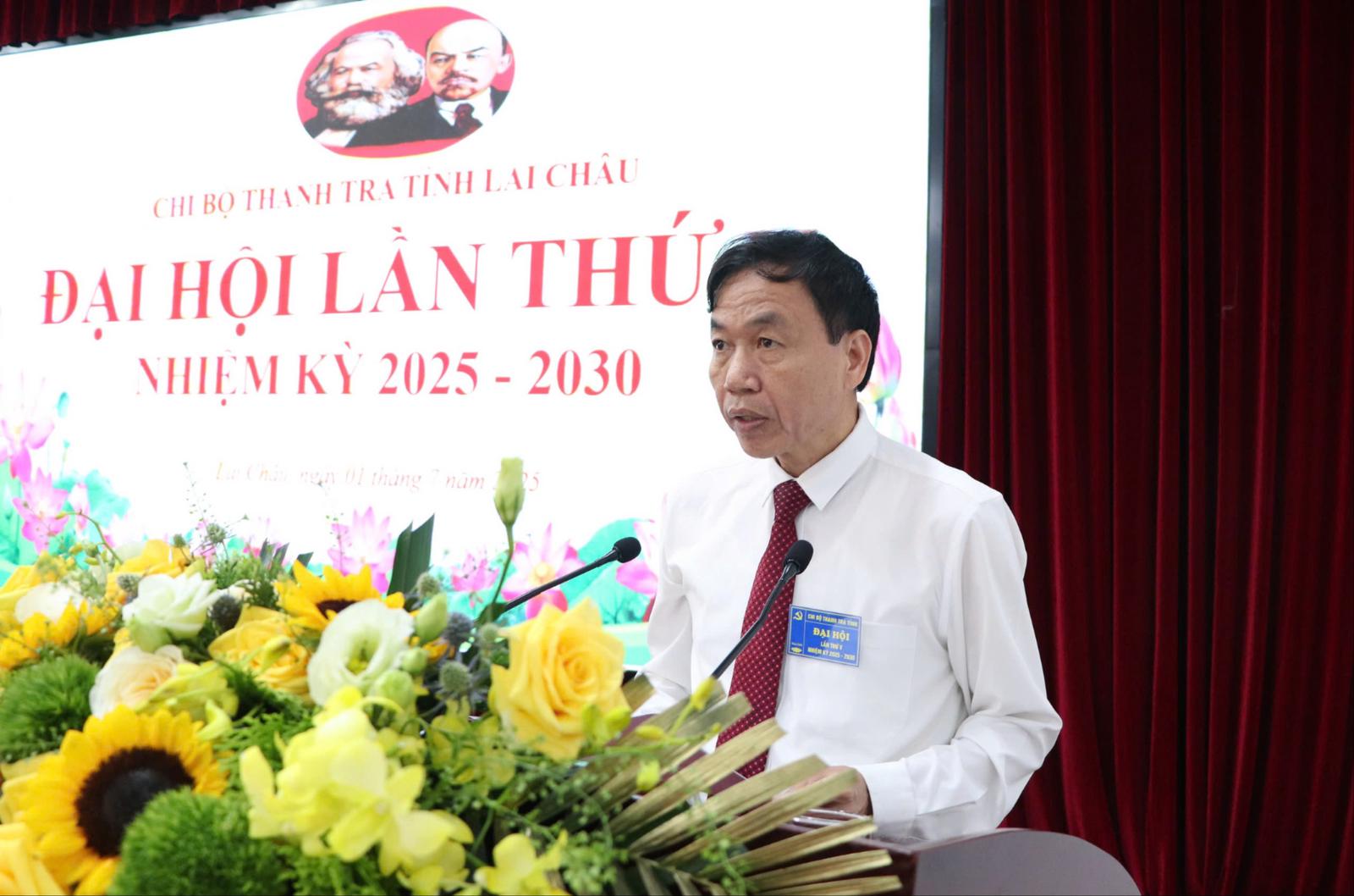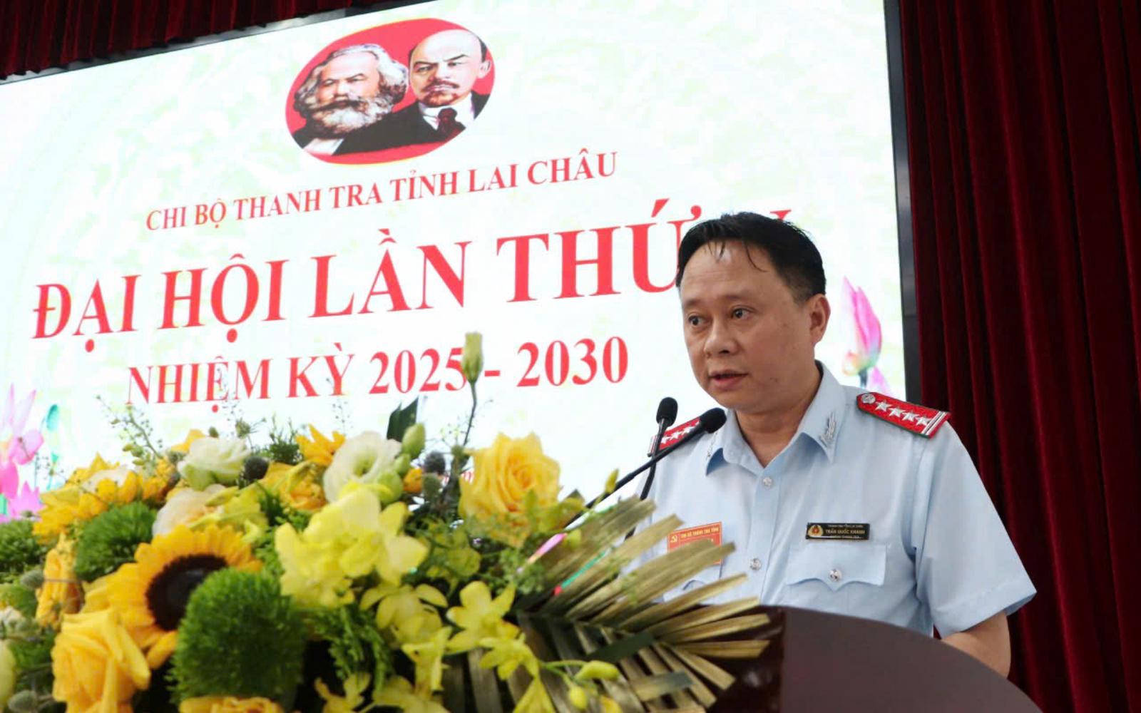 Phát biểu bế mạc Đại hội, ông Trần Quốc Khanh nhấn mạnh: Thành công của Đại hội là kết quả của sự đoàn kết, thống nhất và nỗ lực không ngừng của toàn thể đảng viên, công chức, người lao động. Với tinh thần “Dân chủ - Đổi mới - Chuyên nghiệp - Hiệu quả”, Chi bộ Thanh tra tỉnh Lai Châu quyết tâm xây dựng tổ chức Đảng trong sạch, vững mạnh, vững bước cùng Đảng bộ và Nhân dân tỉnh nhà trong công cuộc xây dựng và bảo vệ Tổ quốc.