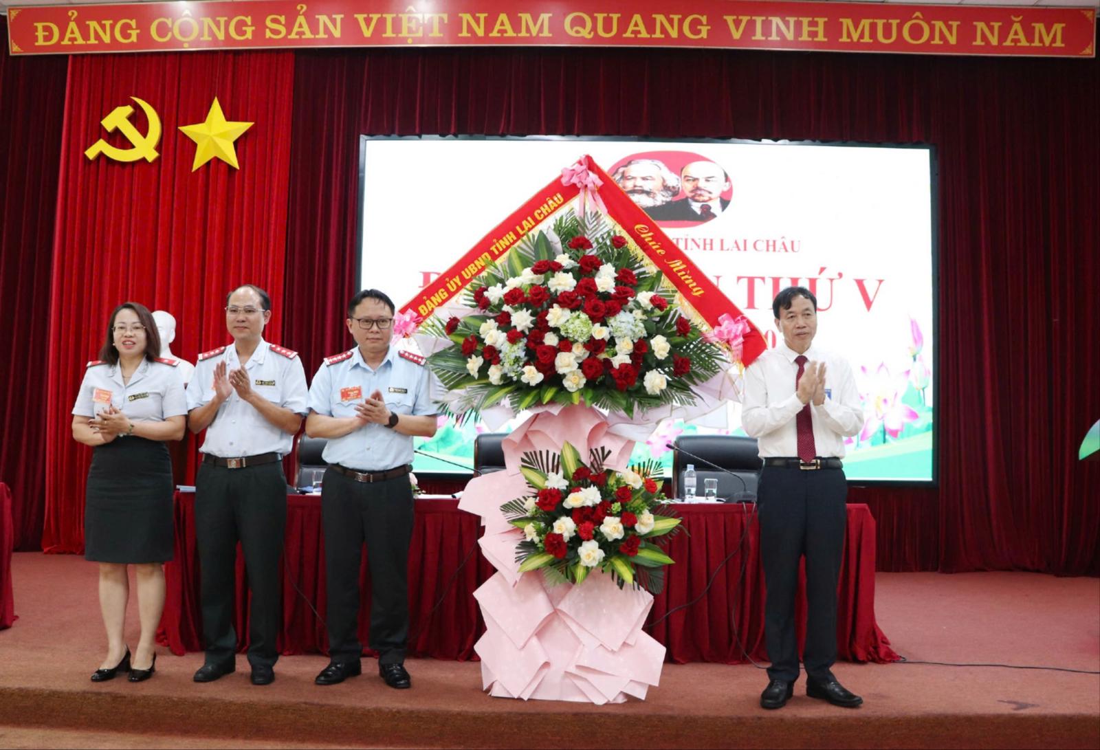 Chủ tịch UBND tỉnh Lê Văn Lương tặng hoa chúc mừng Đại hội. Ảnh: Bùi Bình