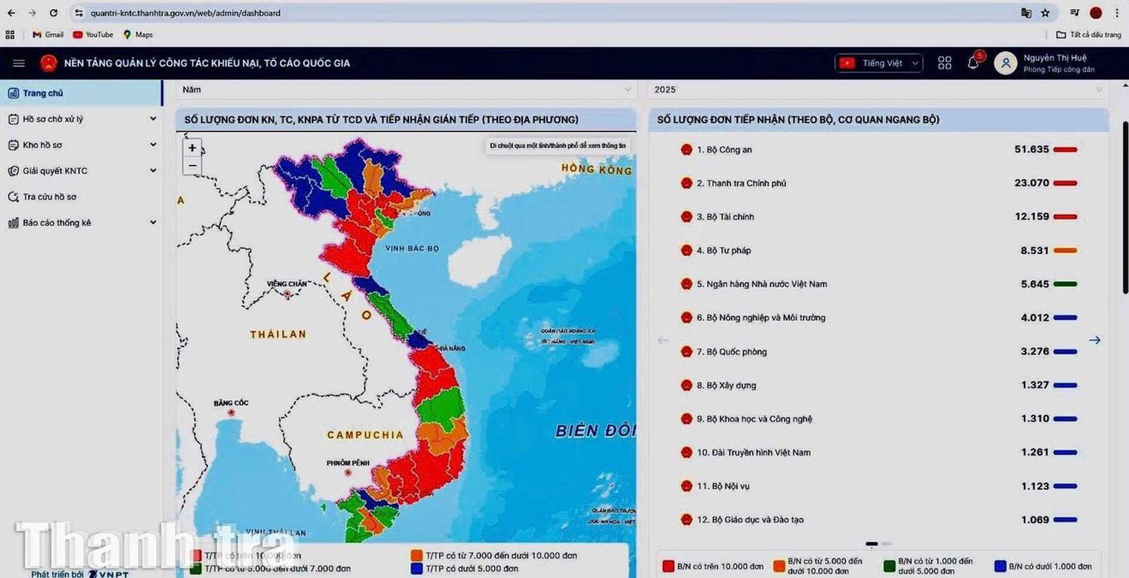 Hệ thống cho phép kiểm tra số lượng đơn tiếp nhận theo địa phương, tới tận cấp xã và bộ, cơ quan ngang bộ. Ảnh: Lan Anh