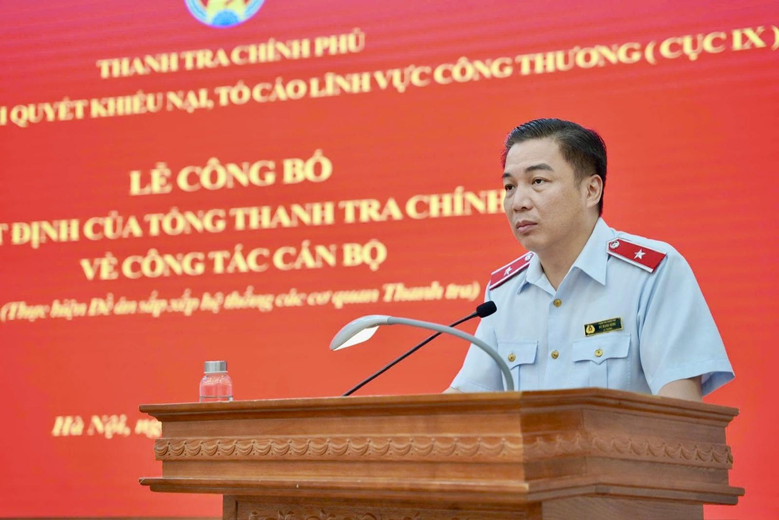 Ông Đỗ Mạnh Hùng, Cục trưởng Cục IX trao các quyết định của Tổng Thanh tra Chính phủ về việc bổ nhiệm cán bộ giữ chức vụ lãnh đạo cấp Phòng thuộc Cục IX. Ảnh: ĐT