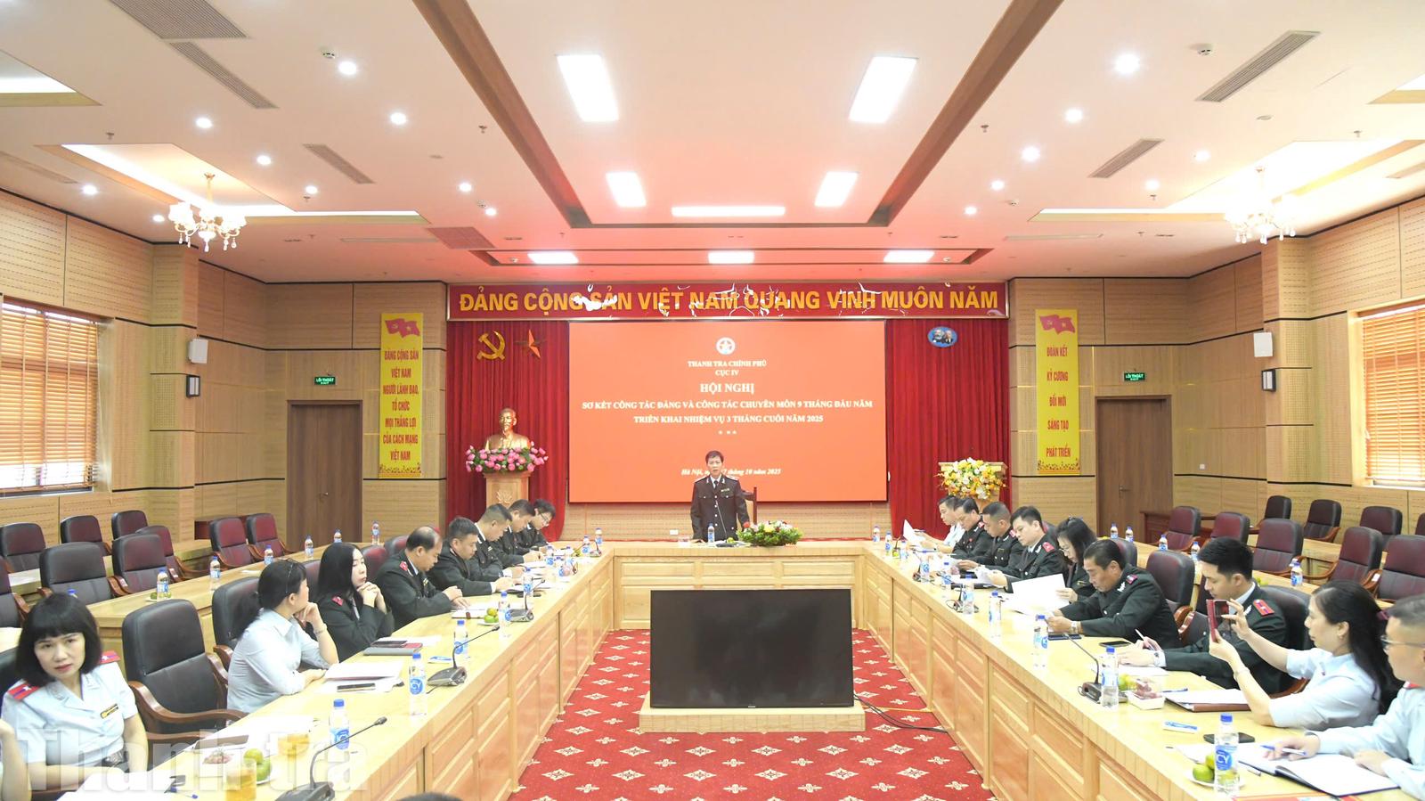 Theo đánh giá của Đảng bộ Cục IV, 9 tháng đầu năm 2025, công tác chỉ đạo, điều hành của Đảng bộ Cục IV tiếp tục có những chuyển biến tích cực trên các mặt công tác, đạt nhiều kết quả trong thực hiện nhiệm vụ chính trị, cơ bản đáp ứng được yêu cầu của lãnh đạo Thanh tra Chính phủ; công tác quản lý Nhà nước về phòng, chống tham nhũng, lãng phí, tiêu cực được tăng cường, từng bước đi vào chiều sâu, có nhiều tiến bộ trong công tác tham mưu, tổng hợp, xây dựng thể chế.