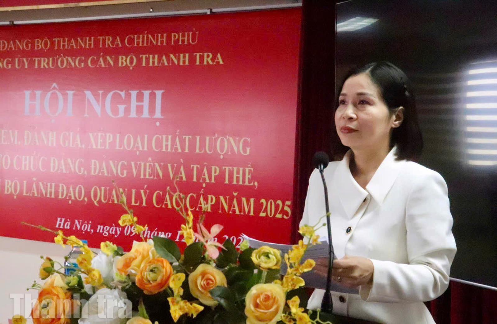 Báo cáo tại hội nghị, Đảng ủy viên, Phó Hiệu trưởng Trường Cán bộ Thanh tra Phạm Thị Thu Hiền cho biết, Đảng bộ Trường Cán bộ Thanh tra là đảng bộ cơ sở trực thuộc Đảng bộ Thanh tra Chính phủ, được thành lập theo Quyết định số 34 ngày 2/6/2025 trên cơ sở hợp nhất Đảng bộ Trường Cán bộ Thanh tra và Chi bộ Viện Chiến lược và Khoa học Thanh tra.