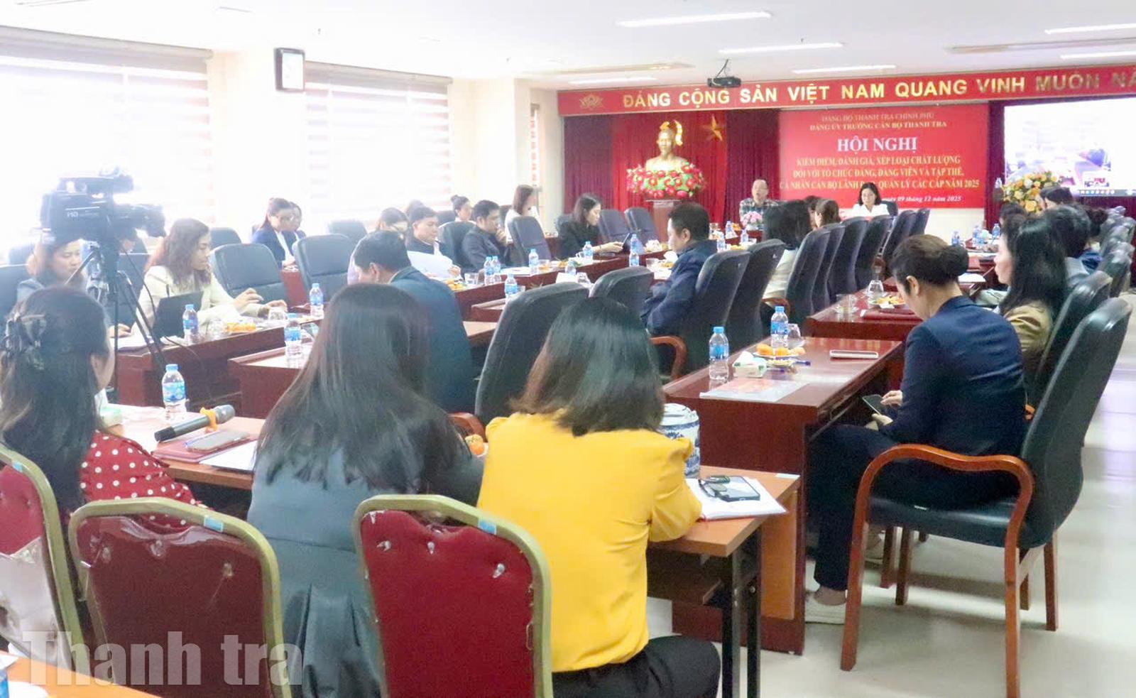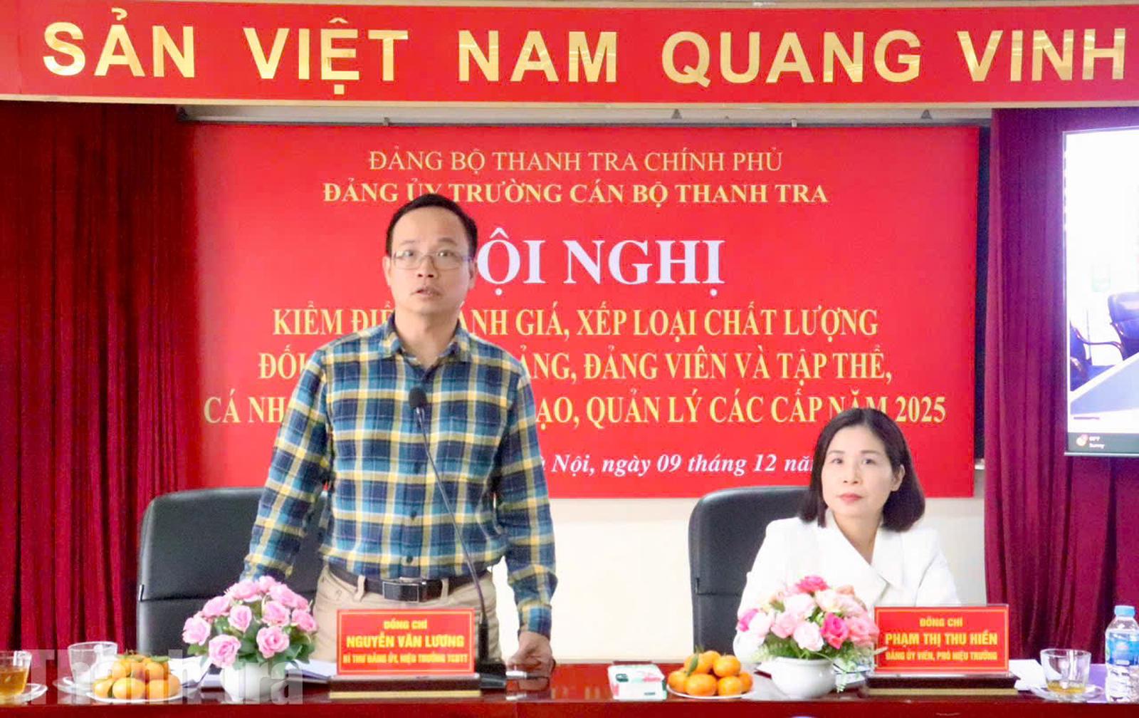 (Thanh tra) - Ngày 9/12, Đảng bộ Trường Cán bộ Thanh tra tổ chức Hội nghị kiểm điểm, đánh giá, xếp loại chất lượng đối với tổ chức Đảng, Đảng viên và tập thể, cá nhân lãnh đạo quản lý các cấp năm 2025. Bí thư Đảng ủy, Hiệu trưởng Trường Cán bộ Thanh tra Nguyễn Văn Lương chủ trì hội nghị.