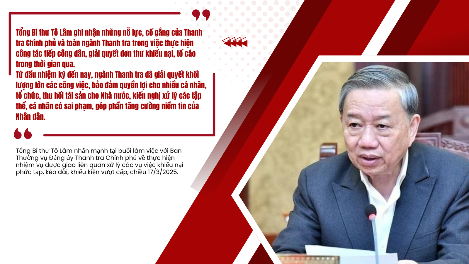 Bí thư Đảng ủy, Tổng Thanh tra Chính phủ Đoàn Hồng Phong khẳng định: "Kết quả thanh tra đã được Ban Chỉ đạo, Tổng Bí thư, Thủ tướng Chính phủ và dư luận xã hội đánh giá cao". Điều này cho thấy sự quyết liệt và hiệu quả của Đảng ủy Thanh tra Chính phủ trong việc đẩy mạnh công tác phòng, chống tham nhũng, lãng phí, góp phần củng cố lòng tin của Nhân dân.
