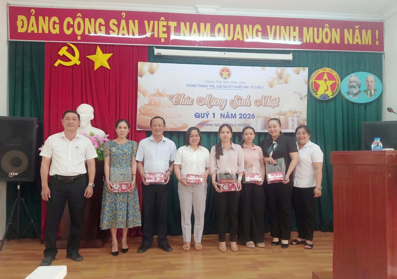 Phòng Thanh tra, giải quyết khiếu nại, tố cáo 3 chúc mừng sinh nhật quý I/2026. Ảnh: Huỳnh Như