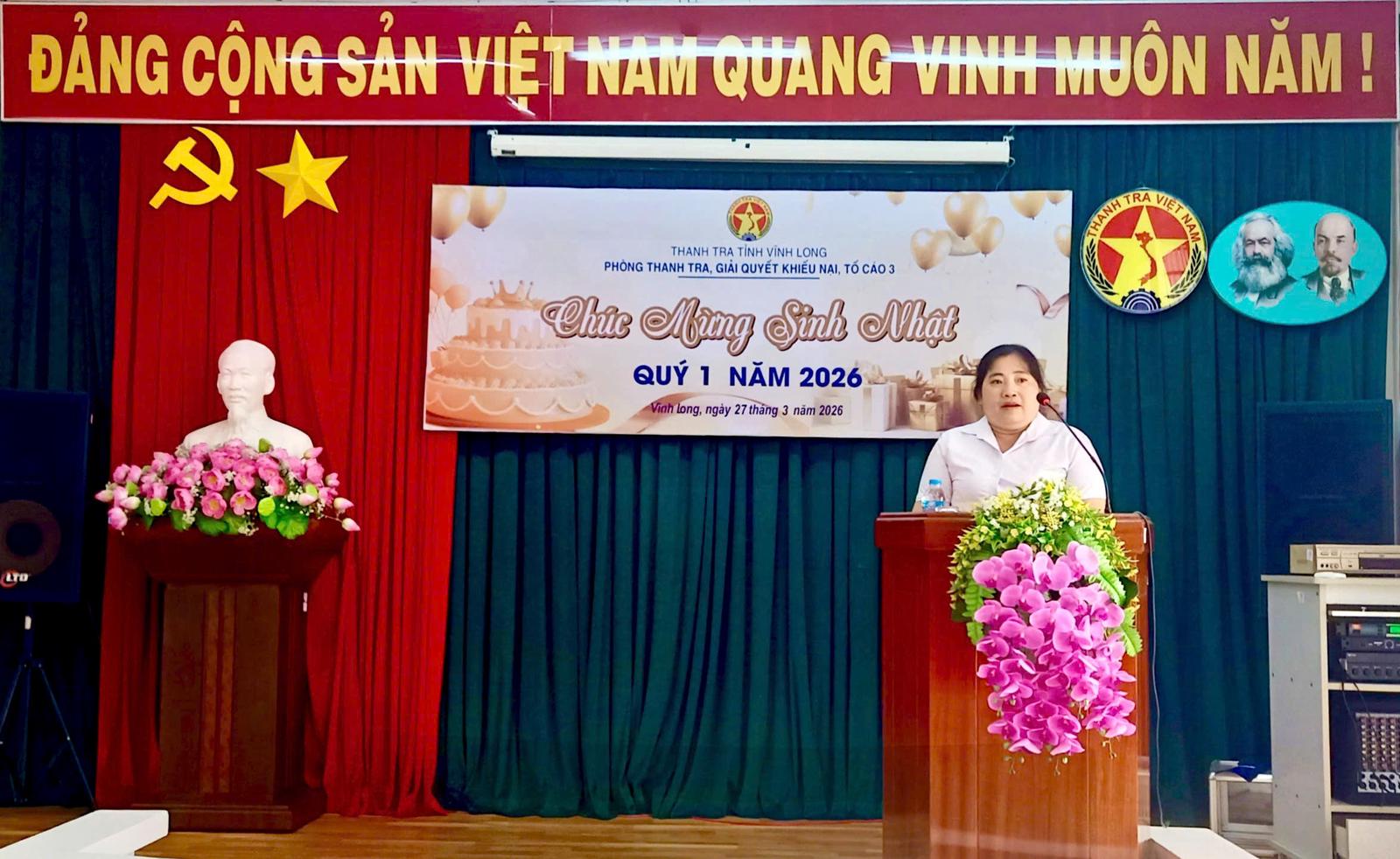 Bà Bùi Thị Hồng Phấn, Trưởng phòng Thanh tra, giải quyết khiếu nại, tố cáo 3 gửi lời chúc mừng sinh nhật đến các công chức có ngày sinh trong quý I năm 2026. Ảnh: Huỳnh Như