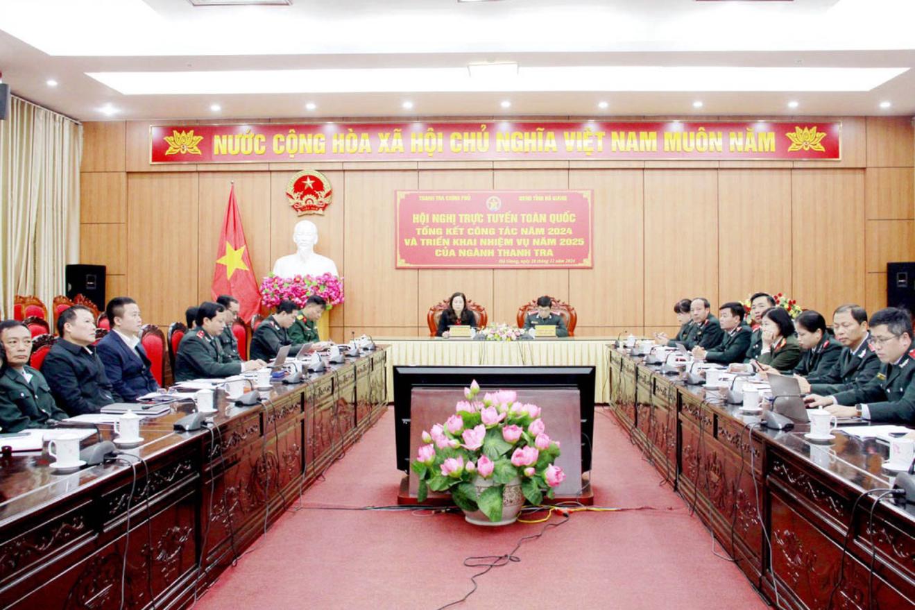 Các đại biểu tại điểm cầu của tỉnh Hà Giang dự Hội nghị triển khai công tác thanh tra năm 2025. Ảnh: An Giang