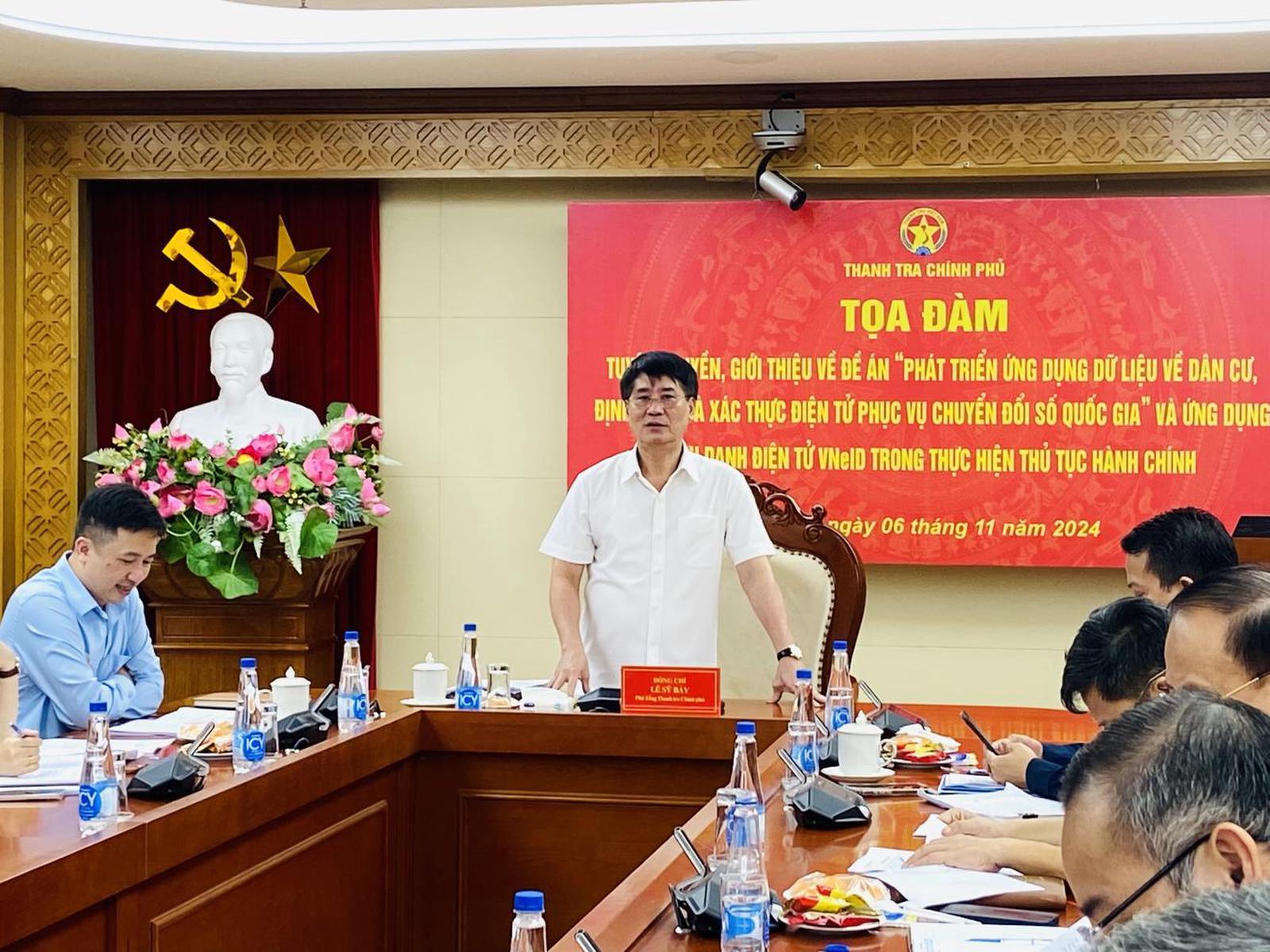 Phó Tổng Thanh tra Chính phủ Lê Sỹ Bảy chủ trì toạ đàm giới thiệu Đề án “Phát triển ứng dụng dữ liệu về dân cư, định danh và xác thực điện tử phục vụ chuyển đổi số quốc gia giai đoạn 2022 - 2025, tầm nhìn đến năm 2030”. Ảnh: LP