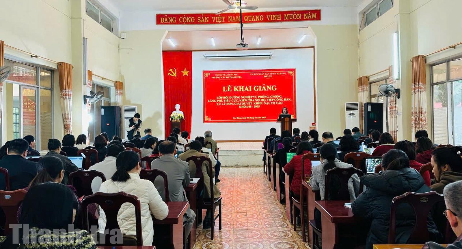 (Thanh tra) - Ngày 4/12, Trường Cán bộ Thanh tra phối hợp với Sở Y tế Cao Bằng tổ chức khóa bồi dưỡng nghiệp vụ phòng, chống tham nhũng, tiêu cực, kiểm tra nội bộ, tiếp công dân, xử lý đơn thư, giải quyết khiếu nại, tố cáo tại tỉnh Cao Bằng. Đây là một trong những Sở Y tế đầu tiên trên cả nước chủ động đề xuất Trường Cán bộ thanh tra xây dựng và triển khai chương trình bồi dưỡng về phòng, chống tham nhũng, lãng phí, tiêu cực lĩnh vực y tế.