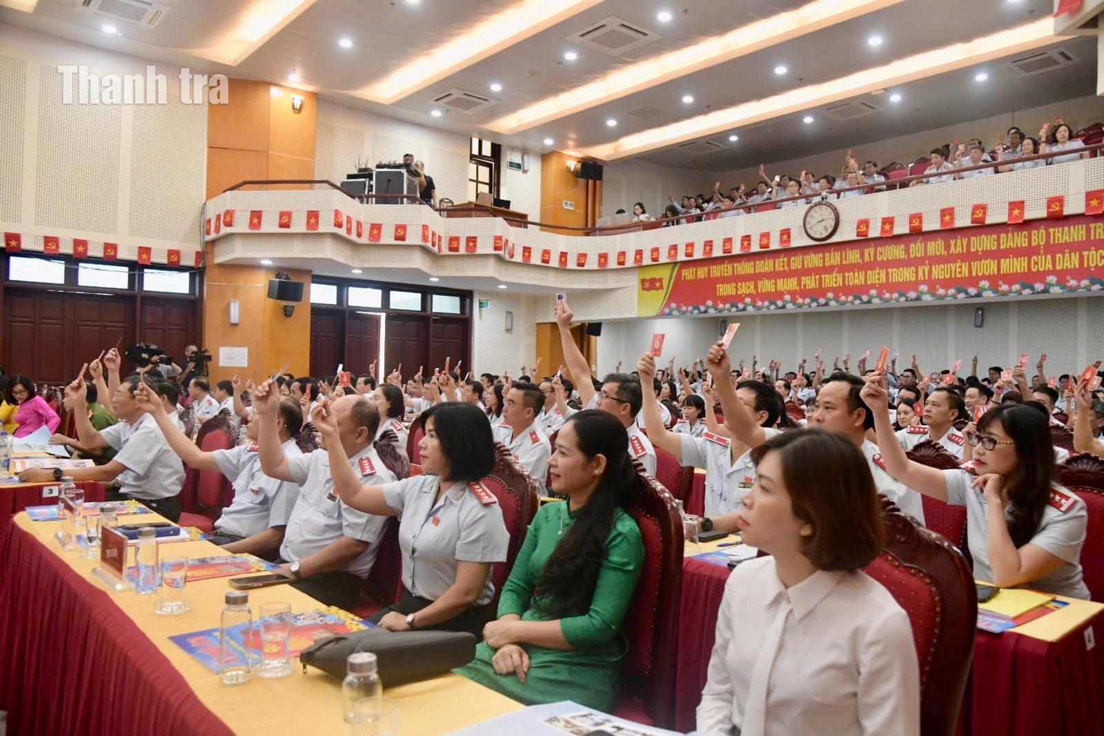 Các đại biểu dự đại hội đều thể hiện dự quyết tâm thực hiện thắng lợi các mục tiêu mà đại hội đã đề ra. Ảnh: H.T