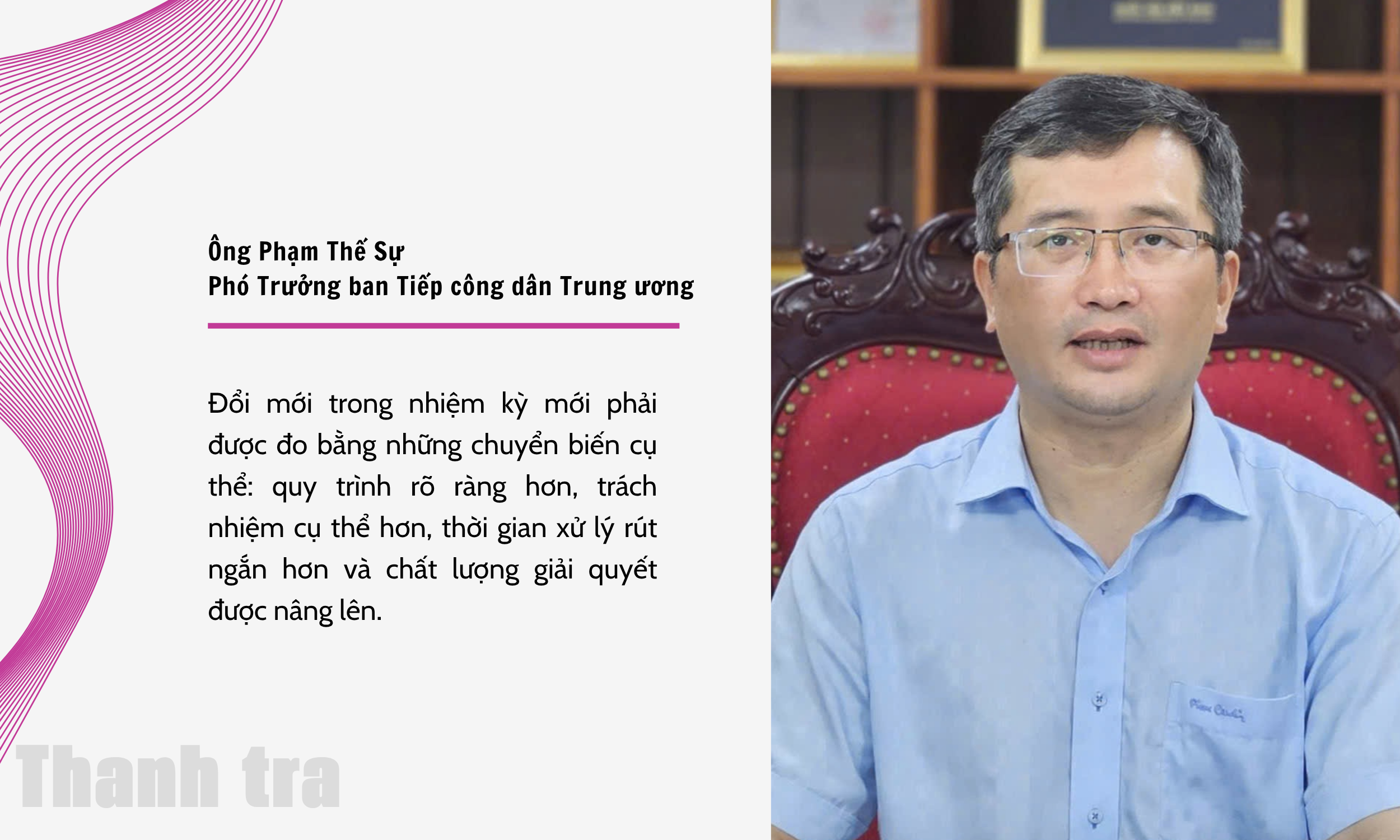 Ở góc độ Ban Tiếp công dân Trung ương, ông cho rằng đây là nơi phản ánh trực tiếp nhất hiệu quả của bộ máy. Những vấn đề tồn tại, những vụ việc kéo dài, hay những vướng mắc trong cơ chế phối hợp đều được bộc lộ rõ qua từng lá đơn được gửi tới, qua từng buổi tiếp công dân. Do đó, đổi mới trong lĩnh vực này không thể chỉ dừng ở việc hoàn thiện quy trình, mà phải giải quyết được những điểm nghẽn đã tồn tại trong thực tiễn.