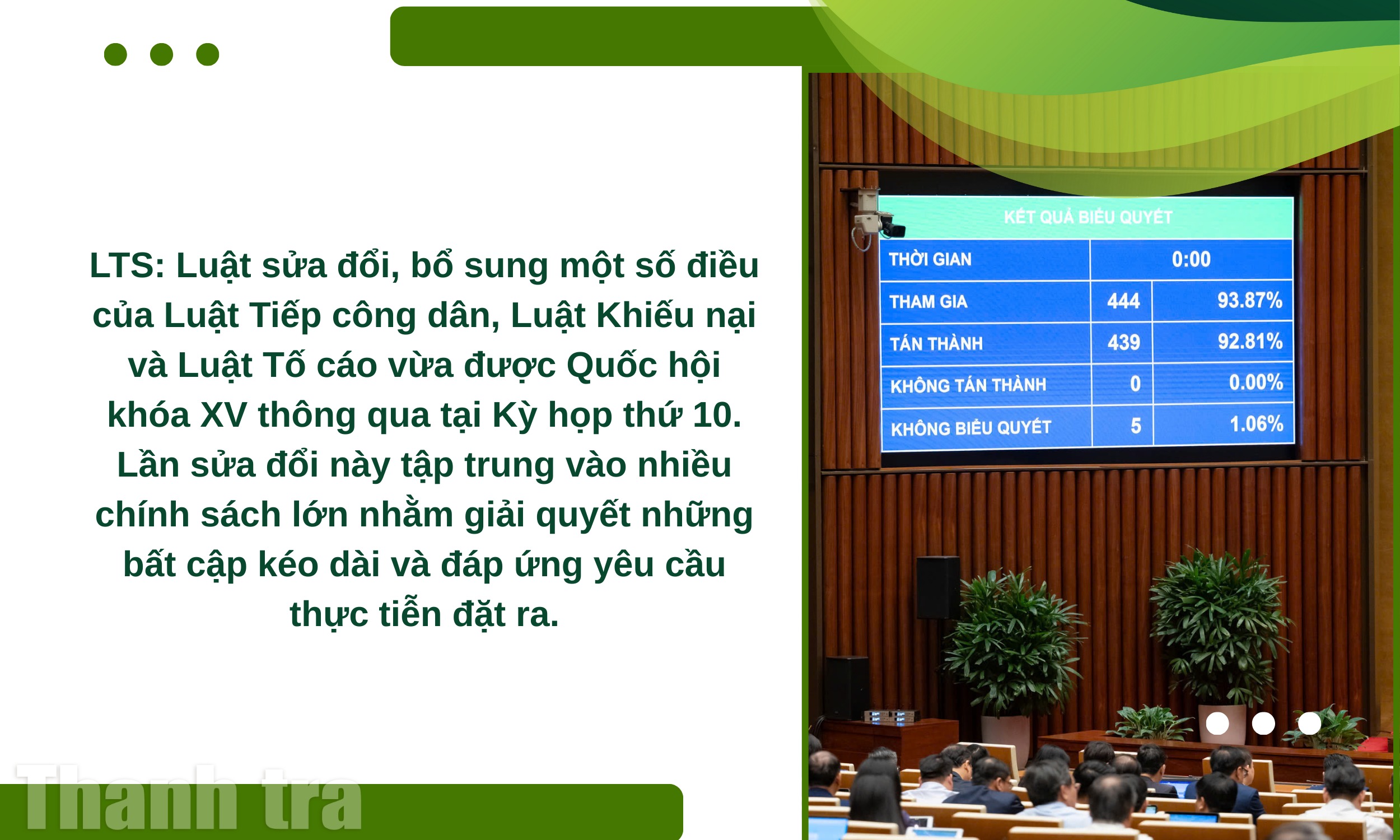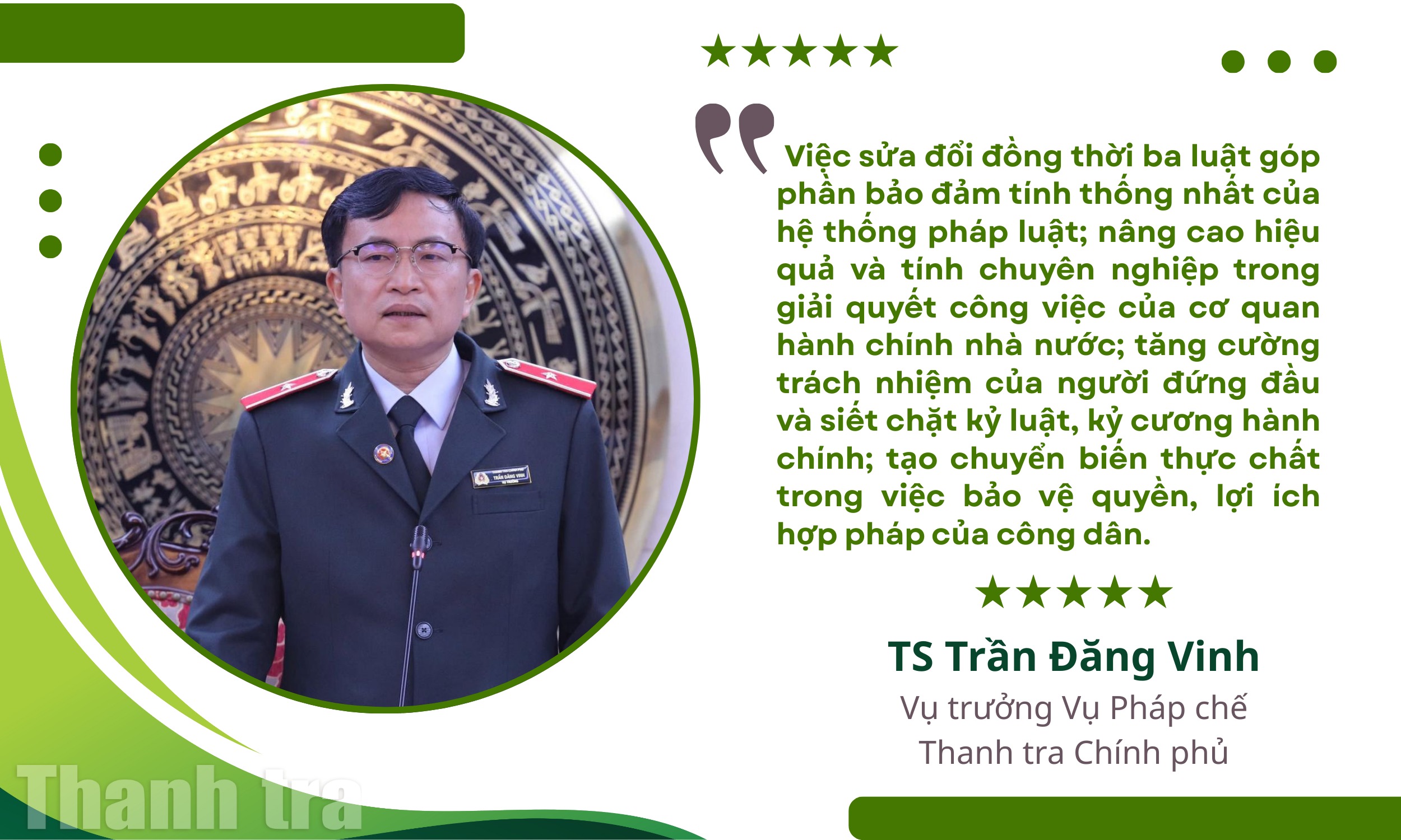 Việc sửa đổi, bổ sung cùng lúc ba luật không phải là kỹ thuật lập pháp đơn thuần mà thể hiện quyết tâm chính trị của Quốc hội và Chính phủ trong việc xây dựng hệ thống pháp luật đồng bộ, hiện đại, lấy người dân làm trung tâm, thích ứng với những đổi mới sau khi sắp xếp tổ chức bộ máy, xây dựng chính quyền địa phương 2 cấp, ứng dụng công nghệ thông tin, chuyển đổi số, đồng thời nâng cao hiệu lực, hiệu quả quản lý nhà nước trong công tác tiếp công dân, xử lý đơn, giải quyết khiếu nại, tố cáo.
