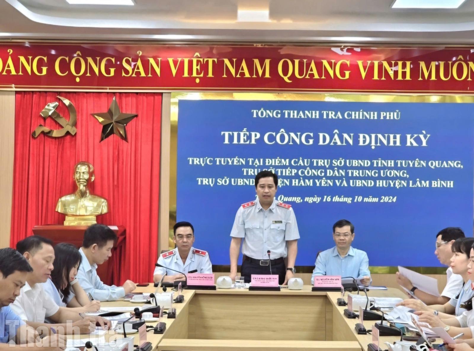 Phó Tổng Thanh tra Chính phủ Dương Quốc Huy chủ trì tiếp công dân định kỳ trực tuyến tại Tuyên Quang. Ảnh: Lan Anh