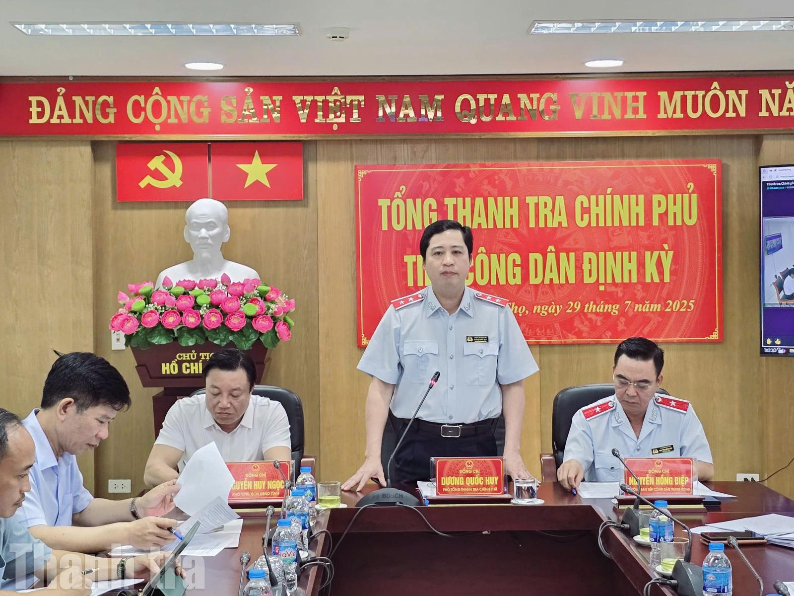 Phó Tổng Thanh tra Chính phủ Dương Quốc Huy tiếp công dân định kỳ trực tuyến tại Phú Thọ. Ảnh: Lan Anh