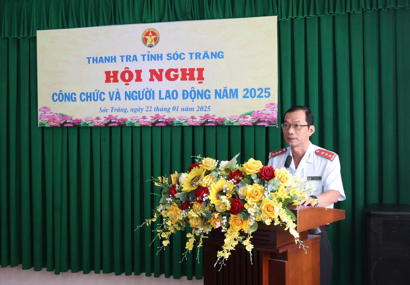 Phó Chánh Thanh tra TP Cần Thơ Lê Tấn Đạt phát biểu tại hội nghị công chức và người lao động Thanh tra tỉnh Sóc Trăng năm 2025. Ảnh: Hữu Anh