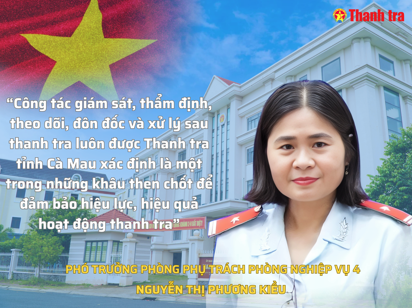 Bà Nguyễn Thị Phương Kiều: Có thể khẳng định rằng, công tác giám sát, thẩm định, theo dõi, đôn đốc và xử lý sau thanh tra luôn được Thanh tra tỉnh Cà Mau xác định là một trong những khâu then chốt để đảm bảo hiệu lực, hiệu quả hoạt động thanh tra.