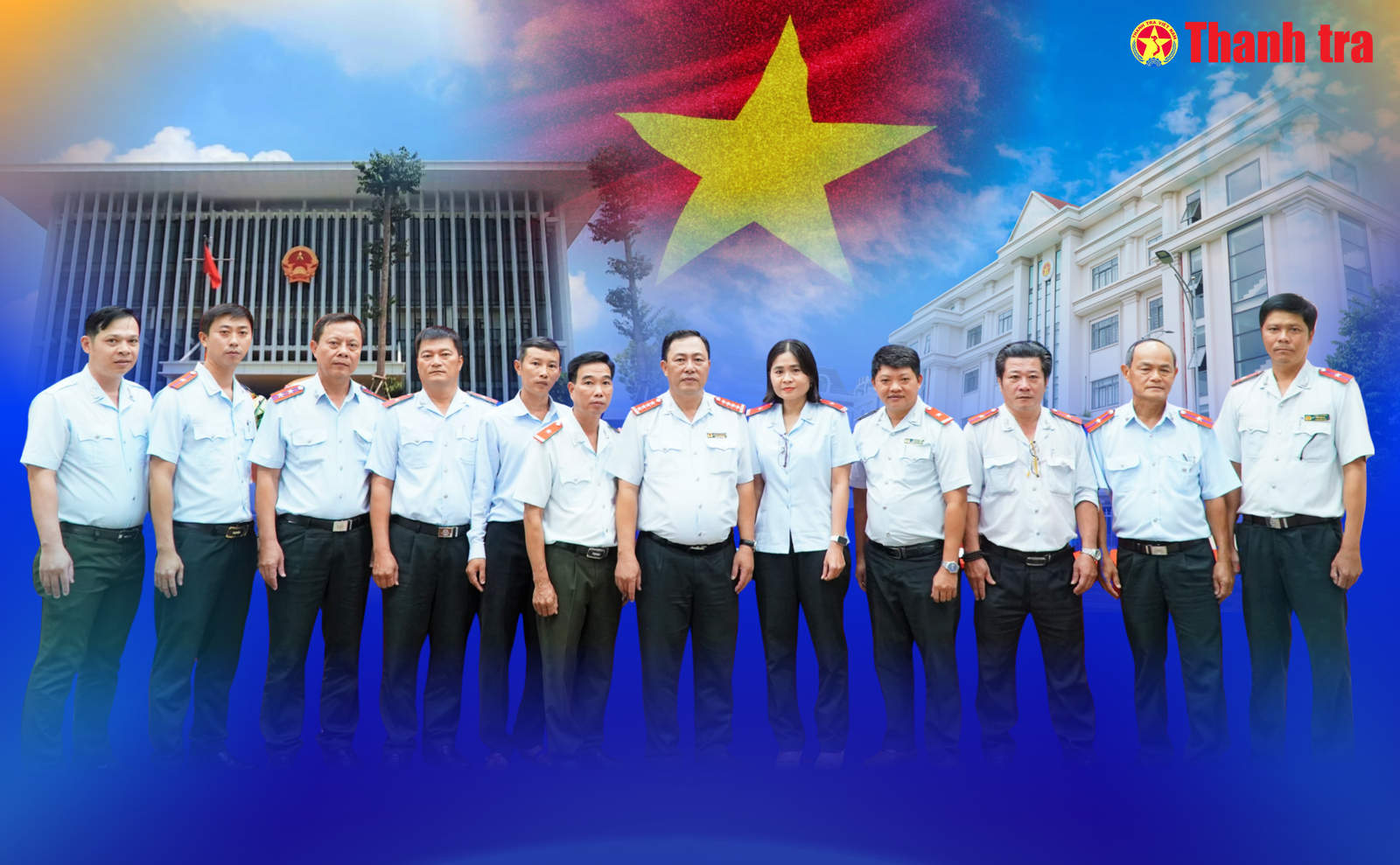 Chánh Thanh tra tỉnh Cà Mau Nguyễn Minh Phụng cùng tập thể cán bộ Phòng Nghiệp vụ 4. Ảnh: Chu Tuấn