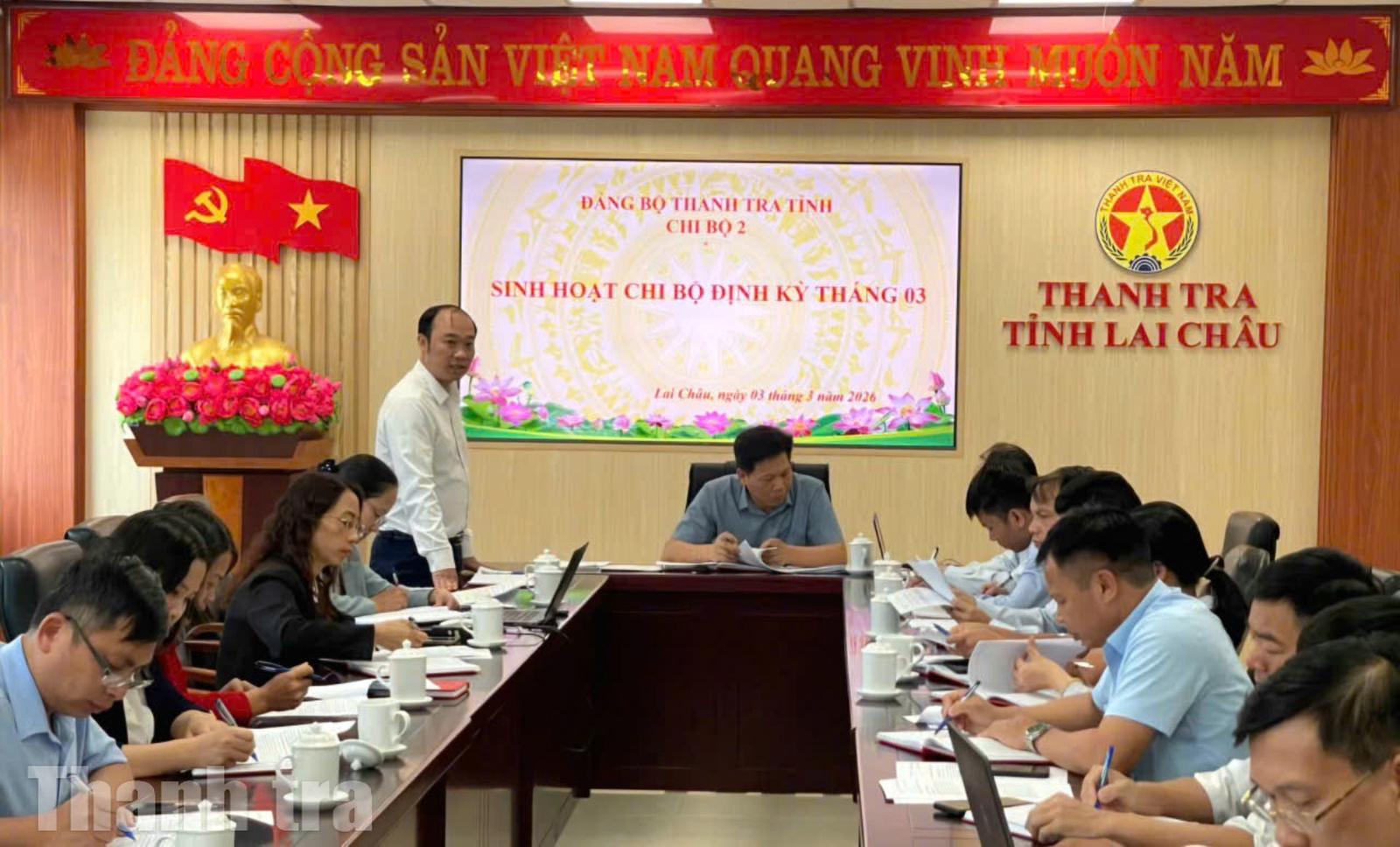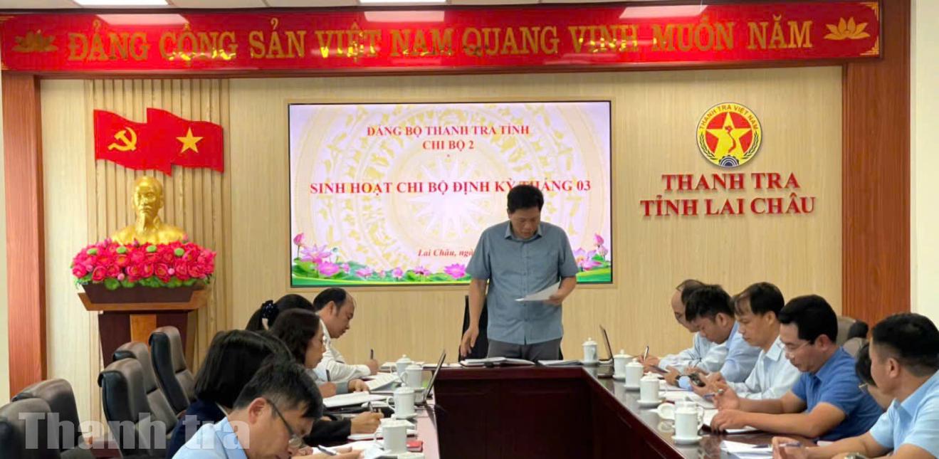 Nhằm nâng cao chất lượng sinh hoạt chi bộ, Chi bộ 2, Đảng bộ Thanh tra tỉnh Lai Châu đã tổ chức sinh hoạt chi bộ mẫu với sự tham dự của các đồng chí Ủy viên Ban Chấp hành Đảng bộ Thanh tra tỉnh cùng Bí thư, Phó Bí thư các chi bộ trực thuộc.