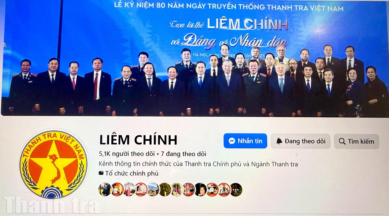 Trang face book Liêm chính của Thanh tra Chính phủ có hơn 5.100 người theo dõi, góp phần đấu tranh thế lực thù địch trên không gian mạng. Ảnh: TH