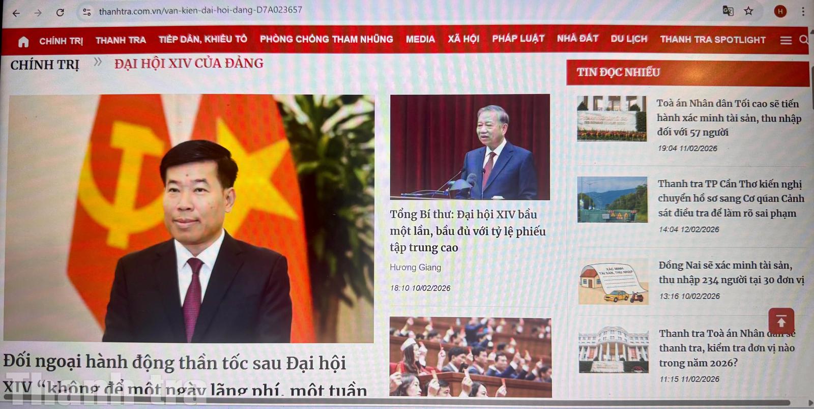 Báo Thanh tra với chuyên mục "Đại hội XIV của Đảng" đã tuyên truyền kịp thời, hiệu quả trước, trong và sau Đại hội XIV của Đảng với hàng trăm tin, bài. Ảnh: TH