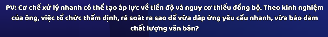 - TS Đinh Văn Minh: Đúng, hiện nay chúng ta đang thực sự làm một cuộc “cách mạng” về xây dựng thể chế, do đó không thể chậm trễ. Tuy nhiên, điều đó đặt ra những yêu cầu lớn về nhận thức, phương thức hành động, năng lực của các cán bộ công chức liên quan đến quá trình thiết kế lại các tổ chức hoạt động.