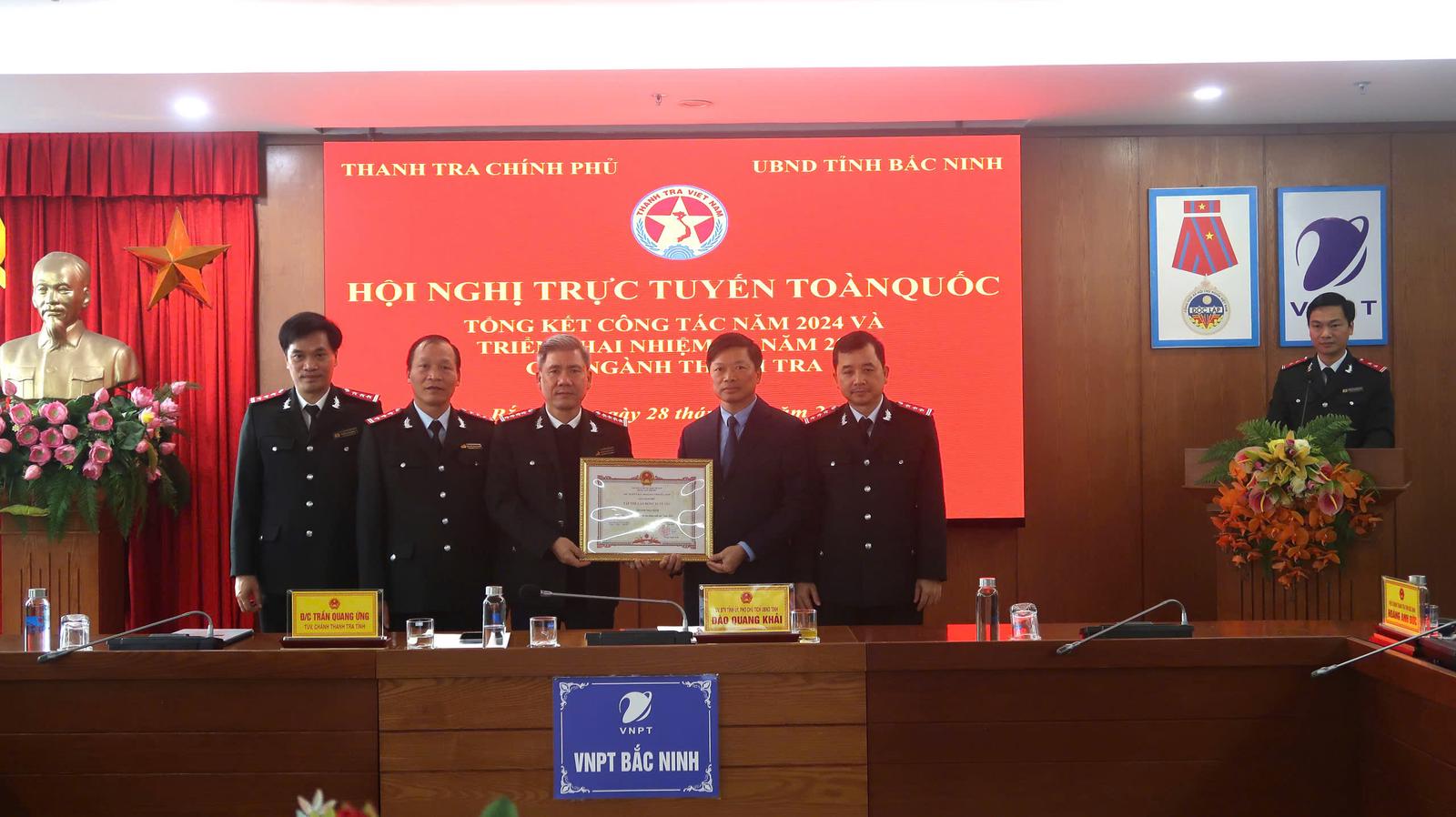 Phó Chủ tịch Thường trực UBND tỉnh Bắc Ninh Đào Quang Khải trao Bằng khen của Chủ tịch UBND tỉnh cho tập thể Thanh tra tỉnh. Ảnh: HH