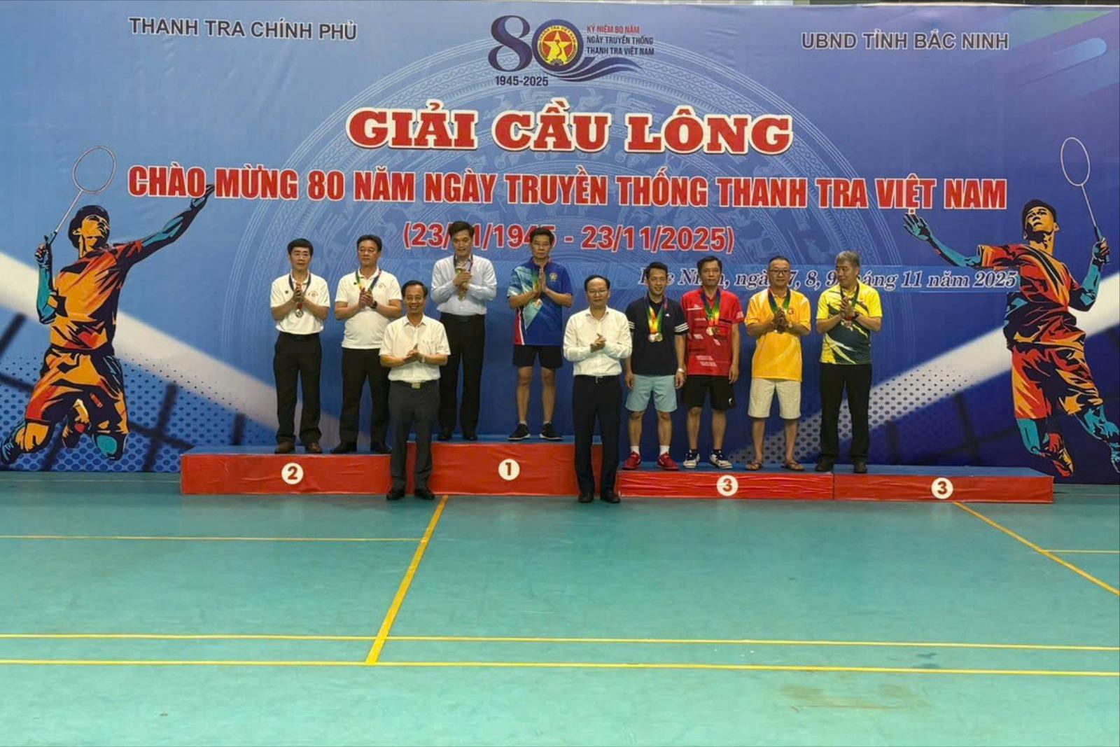 Đôi nam lãnh đạo Thanh tra tỉnh Bắc Ninh đạt giải Nhất môn Cầu lông tại Hội thao ngành Thanh tra năm 2025. Ảnh: TV