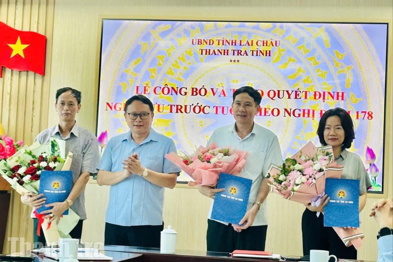 Chánh Thanh tra tỉnh Lai Châu Trần Quốc Khanh trao quyết định nghỉ hưu trước tuổi theo Nghị định 178. Ảnh: Bùi Bình