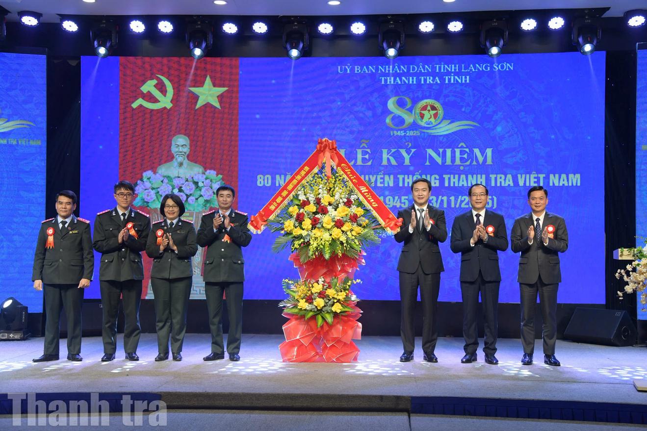 Lãnh đạo HĐND tỉnh, UBND tỉnh tặng hoa chúc mừng tập thể Thanh tra tỉnh Lạng Sơn nhân ngày 23/11. Ảnh: PV
