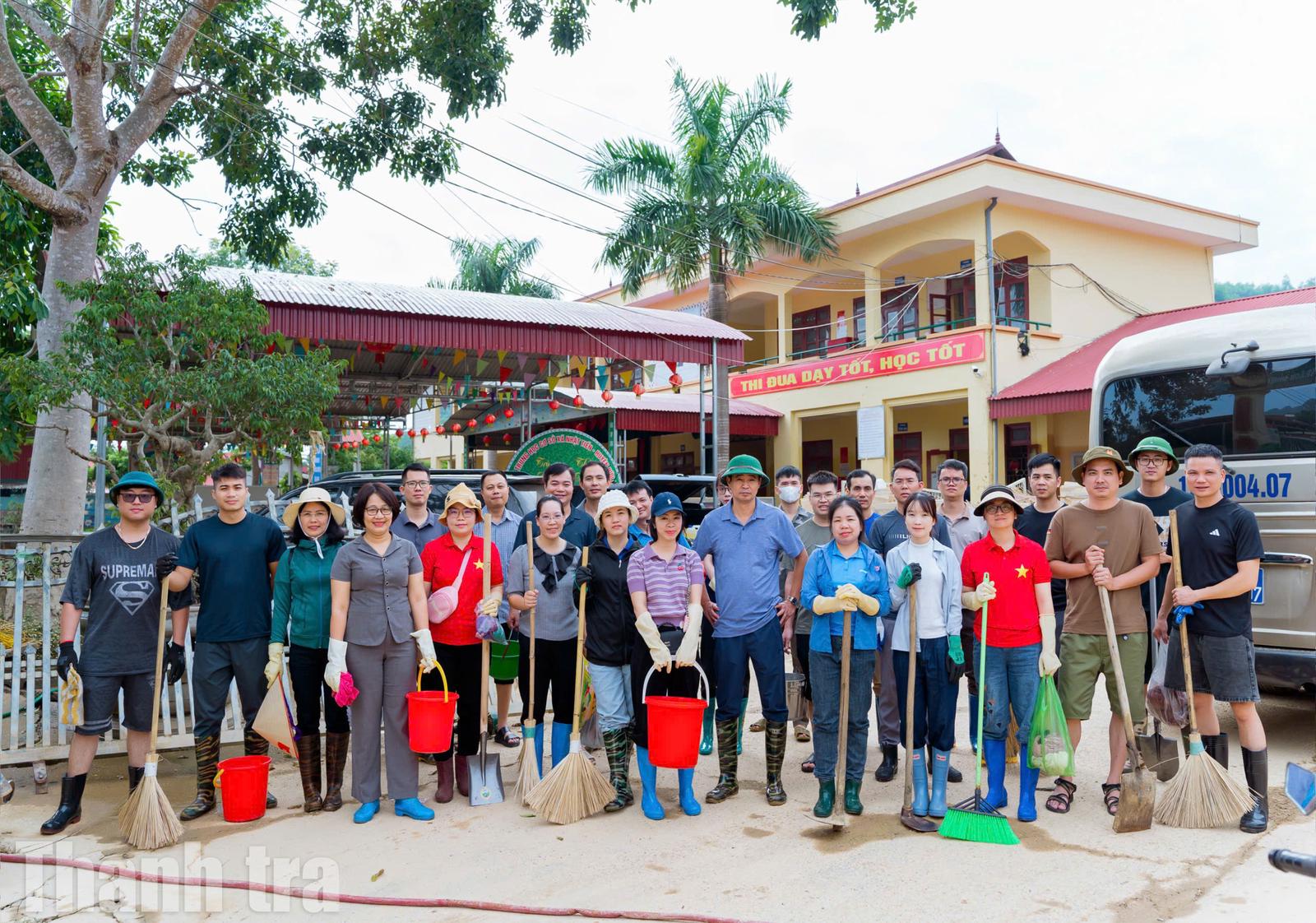 Thanh tra tỉnh Lạng Sơn hỗ trợ bà con vùng lũ dọn dẹp, khắc phục sau lũ lụt. Ảnh: Tô Hương