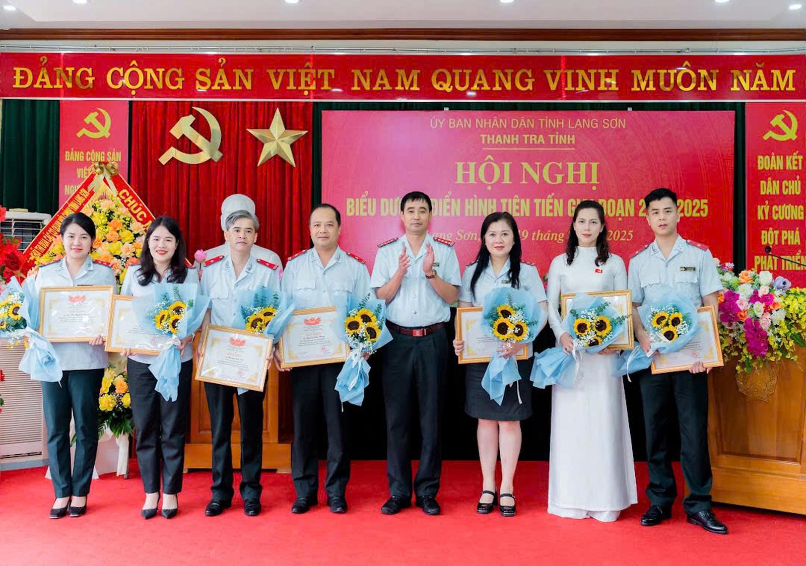 Chánh Thanh tra tỉnh Lạng Sơn Đậu Trường An tặng Giấy khen điển hình tiên tiến giai đoạn 2020 - 2025 tại hội nghị biểu dương ngày 19/8/2025. Ảnh: Tô Hương