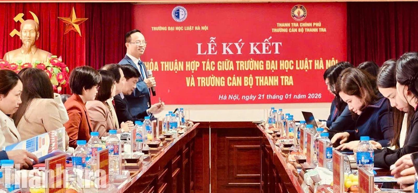 (Thanh tra) - Thỏa thuận hợp tác giữa Trường Đại học Luật Hà Nội và Trường Cán bộ Thanh tra ký kết ngày 21/1 tại Hà Nội nêu cao nguyên tắc: Hợp tác toàn diện, lâu dài, hiệu quả và cùng phát triển...