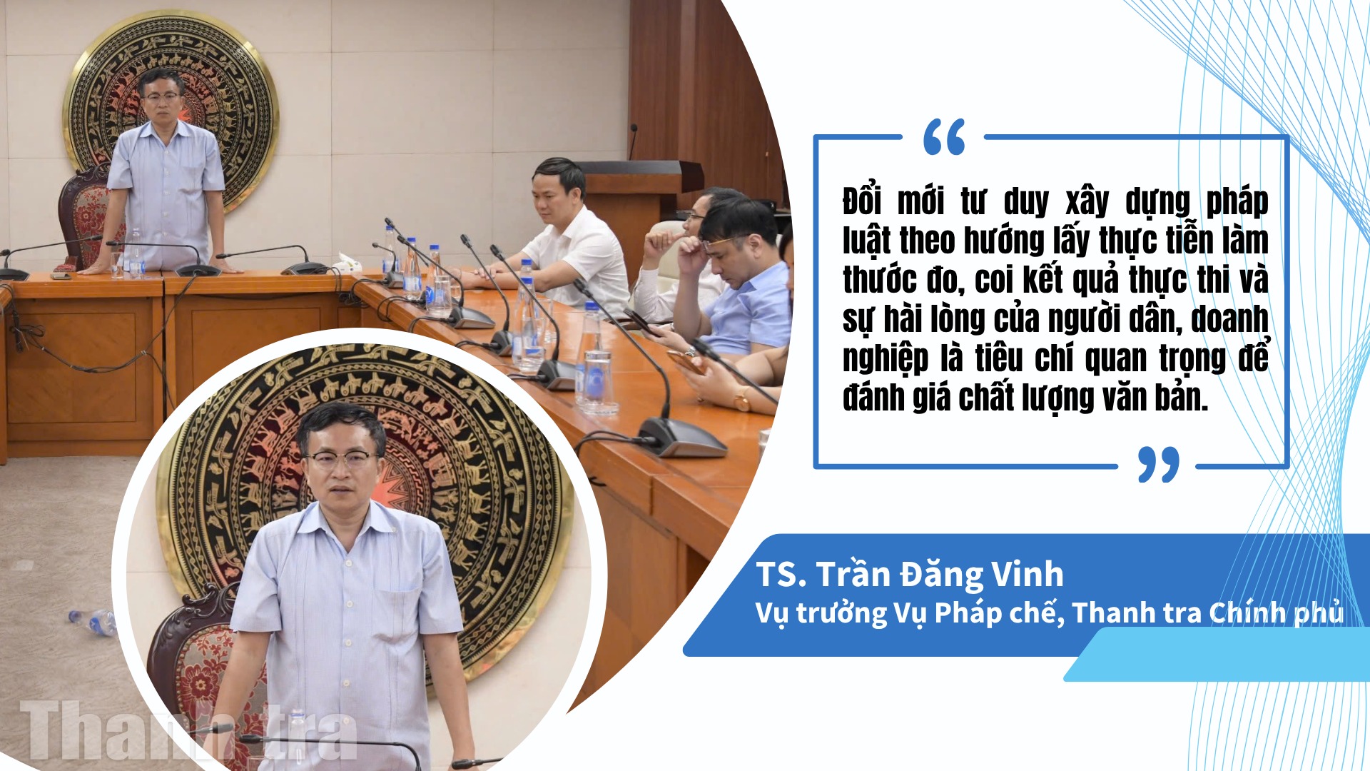 TS Trần Đăng Vinh khẳng định: “Đổi mới tư duy xây dựng pháp luật theo hướng lấy thực tiễn làm thước đo, coi kết quả thực thi và sự hài lòng của người dân, doanh nghiệp là tiêu chí quan trọng để đánh giá chất lượng văn bản.” Đó chính là cách để xây dựng một hệ thống pháp luật đồng bộ, gọn nhẹ, dễ hiểu, dễ áp dụng, dễ kiểm tra, góp phần nâng cao hiệu lực, hiệu quả hoạt động của ngành Thanh tra trong giai đoạn phát triển mới.