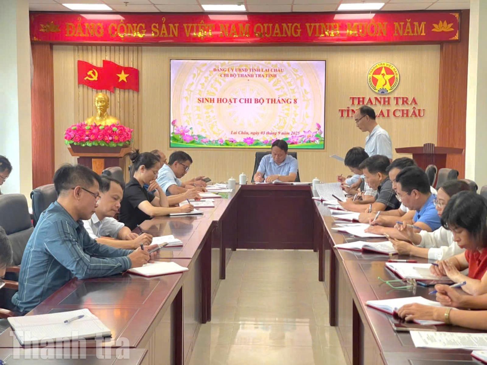 Buổi sinh hoạt định kỳ tháng 8/2025 của Chi bộ Thanh tra tỉnh Lai Châu. Ảnh: Bùi Bình
