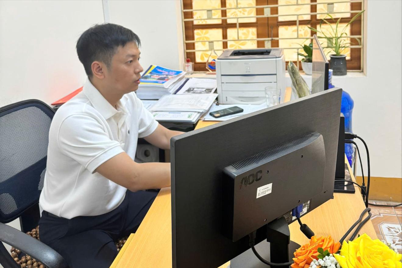 Công chức Thanh tra tỉnh Yên Bái thực hiện cập nhật, bổ sung thông tin trên Hệ thống cơ sở dữ liệu về cán bộ, công chức, viên chức của tỉnh Yên Bái. Ảnh: Phí Khánh