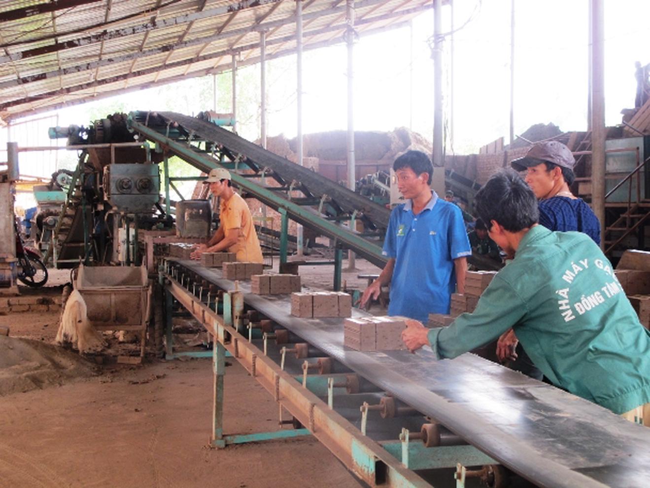 Dây chuyền sản xuất gạch vẫn hoạt động bình thường. Ảnh: Hồng Bài