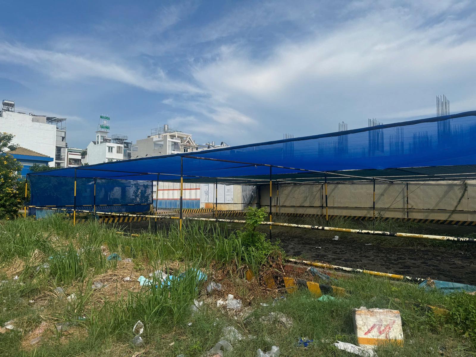 “Dự án này quây tôn, dừng thi công cả mấy năm rồi. Trước thì còn có cái công (đặt trụ sở chỉ huy công trình) đặt đây cả mấy năm rồi, thế nhưng khoảng 1 tháng trước cũng đã bị cẩu đi rồi, khoảng đất đó giờ thành bãi gửi xe cho mấy quán nhậu”, một người dân chia sẻ.