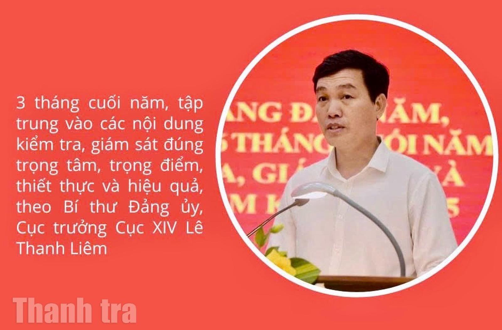 Bí thư Đảng ủy, Cục trưởng Cục XIV Lê Thanh Liêm cho biết, thực hiện Chương trình kiểm tra, giám sát của Đảng ủy và Ủy ban Kiểm tra Đảng ủy Thanh tra Chính phủ, Đảng ủy và Ủy ban Kiểm tra Đảng ủy Cục đã bám sát và thực hiện tốt, toàn diện chương trình, kế hoạch kiểm tra, giám sát năm 2025.