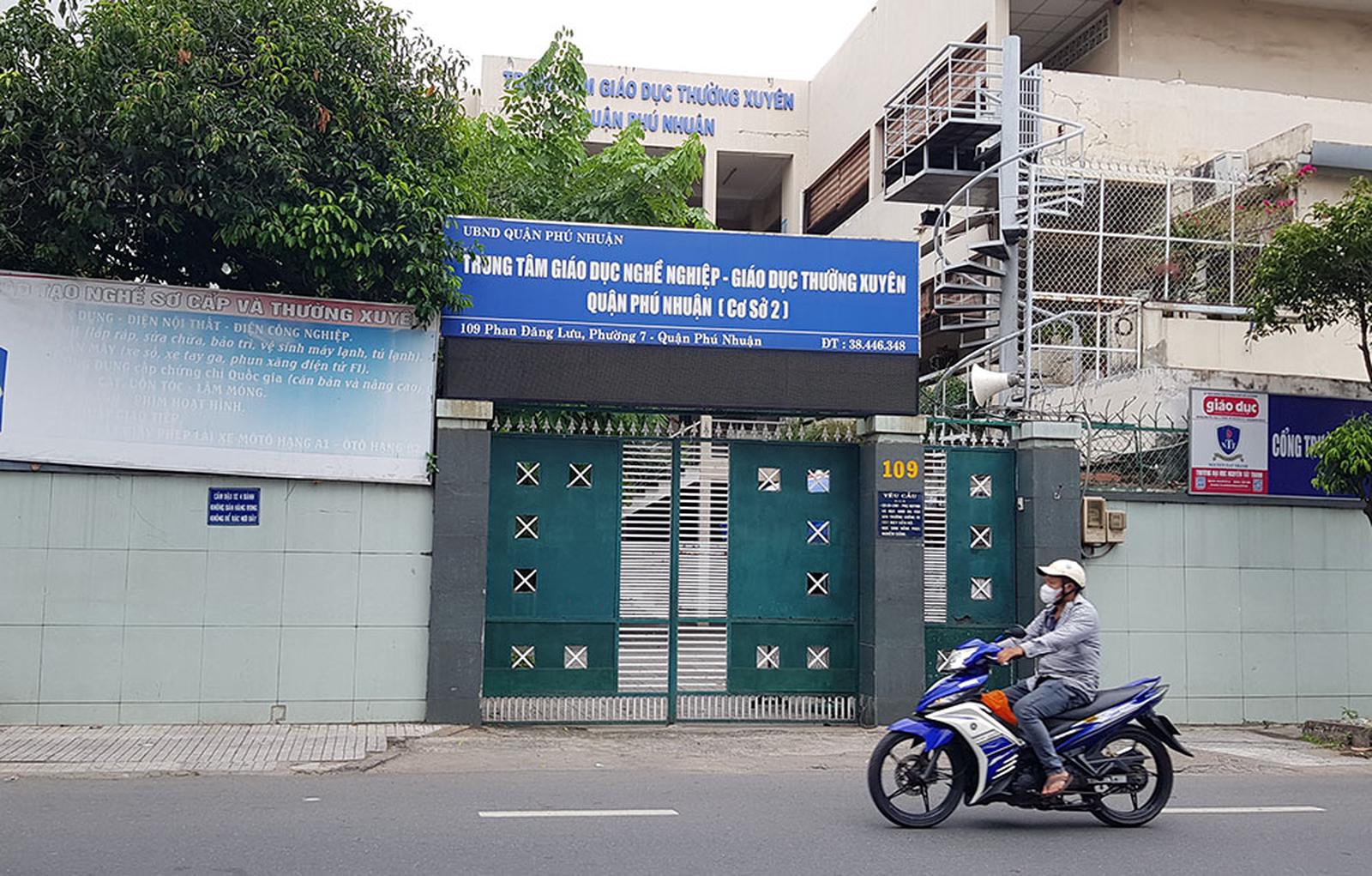 Cơ sở 2 của Trung tâm Giáo dục nghề nghiệp - Giáo dục thường xuyên quận Phú Nhuận trên đường Phan Đăng Lưu, Phường 7. Ảnh: CN