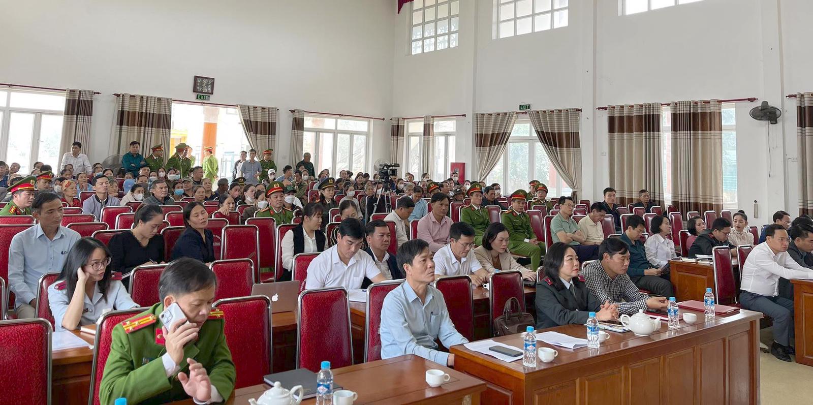 Toàn cảnh buổi công bố Kết luận số 07/KL-UBND ngày 05/01/2024 của UBND tỉnh Hà Tĩnh về công tác quản lý và tổ chức hoạt động tại Di tích Quốc gia Đền Chợ Củi. Ảnh: Hải Yến