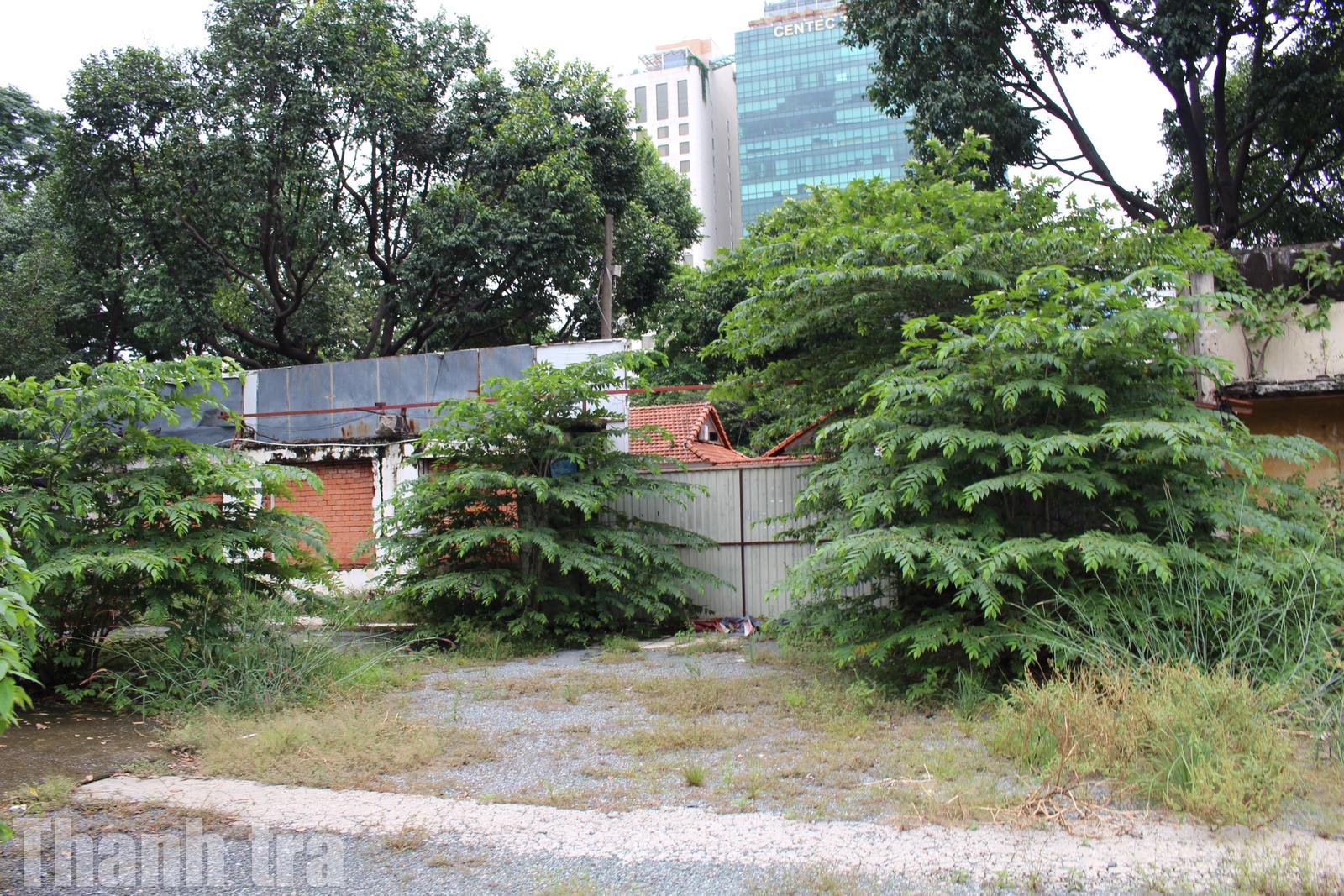 Vị trí bên trong khu đất 8-12 Lê Duẩn, giáp với hàng rào Trung tâm thương mại Diamond Plaza, mọc cả cây cổ thụ. Ảnh Minh Nghĩa
