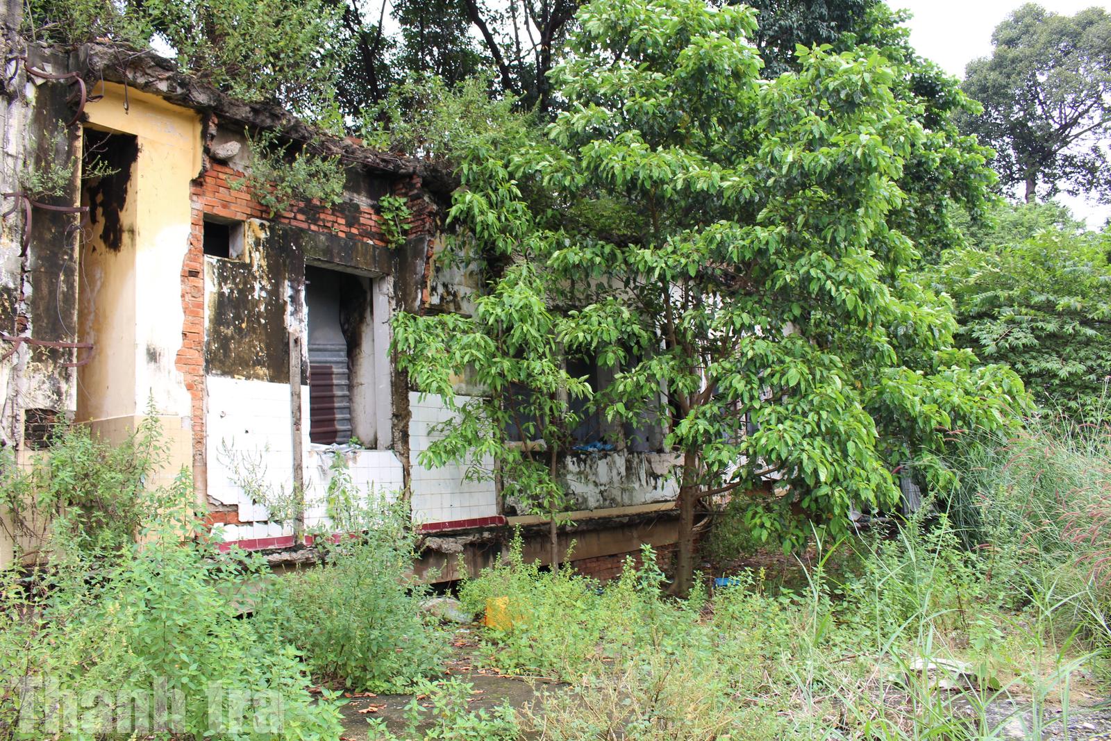 Phía ngoài khu đất gắn biển quảng cáo , nhưng phía sau bức tường là cảnh hoang phế. Ảnh Minh Nghĩa