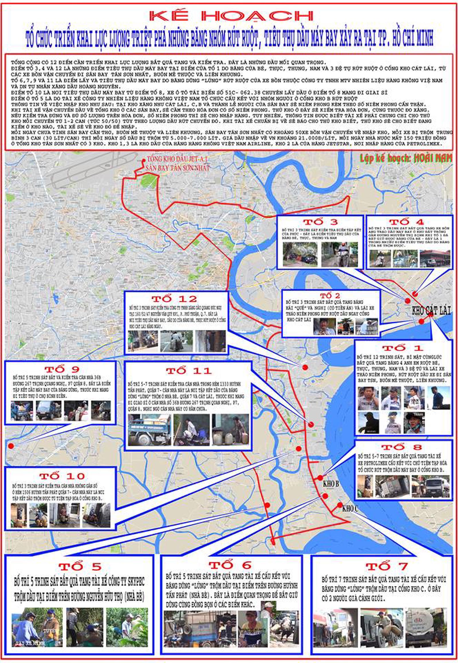 Kế hoạch triệt phá vụ trộm cắp xăng dầu máy bay do PV Hoài Nam lập. Ảnh: ND