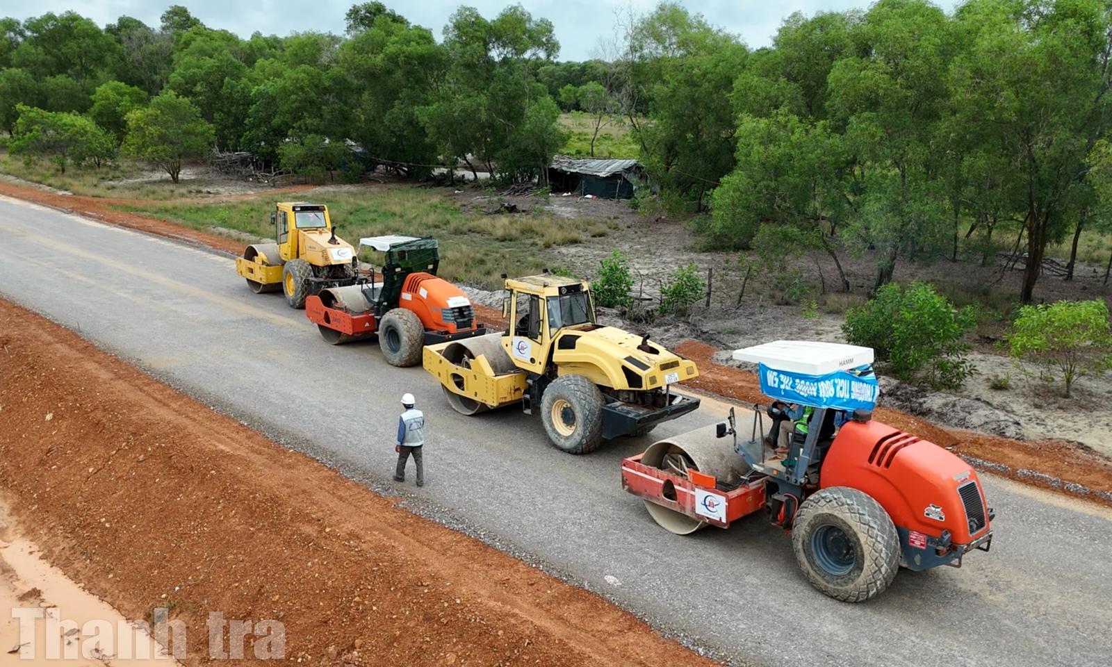 Nhà thầu tổ chức thi công các hạng mục trên tuyến đường ven biển. Ảnh: Minh Tân