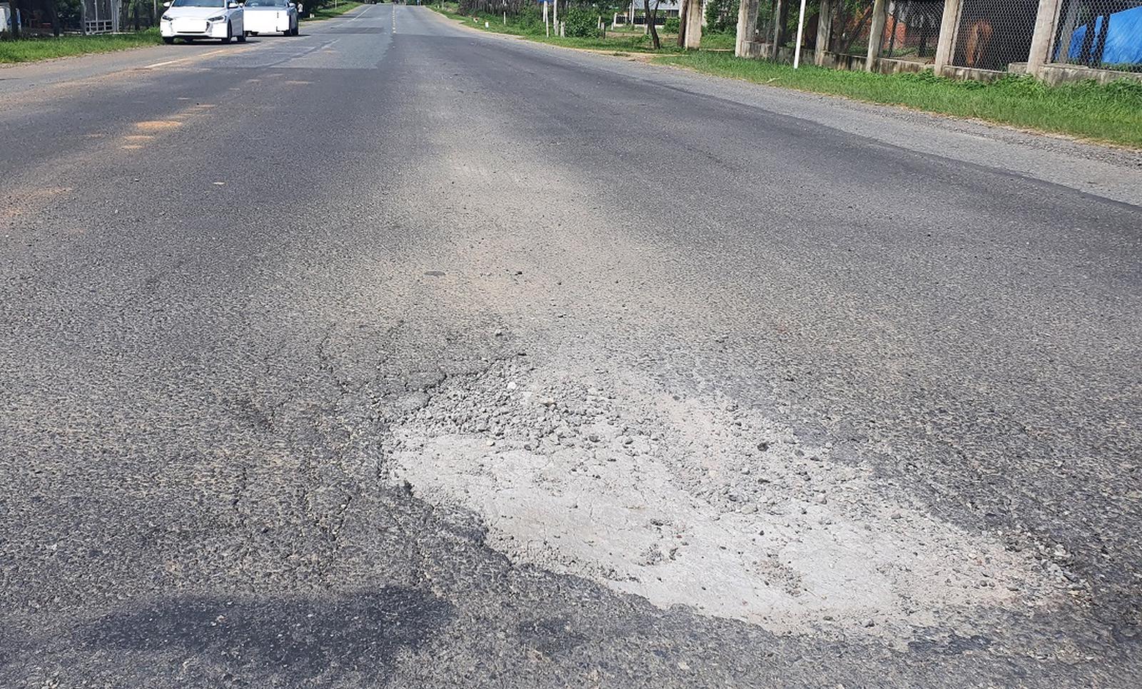 Một "ổ gà" nằm giữa đường trên tuyến tránh quốc lộ 55, tiềm ẩn nguy cơ mất an toàn giao thông. Ảnh chụp đầu tháng 7/2020: NH