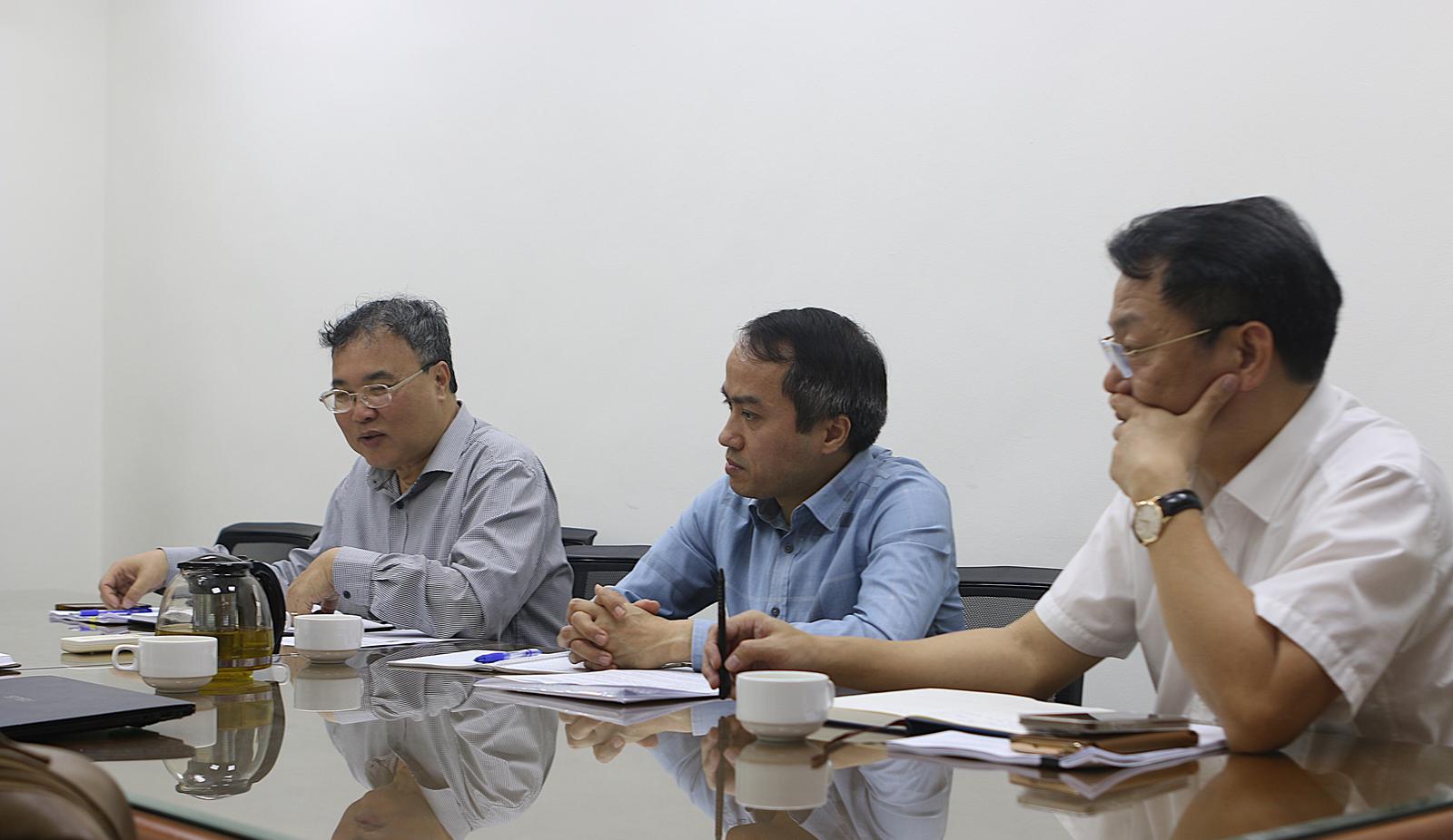 Đại diện lãnh đạo Trường Đại học Thủy lợi làm việc với nhóm phóng viên Báo Thanh tra để cung cấp thông tin về kết quả thực hiện Kết luận thanh tra số 30/KL-TTr. Ảnh: Hoàng Nam