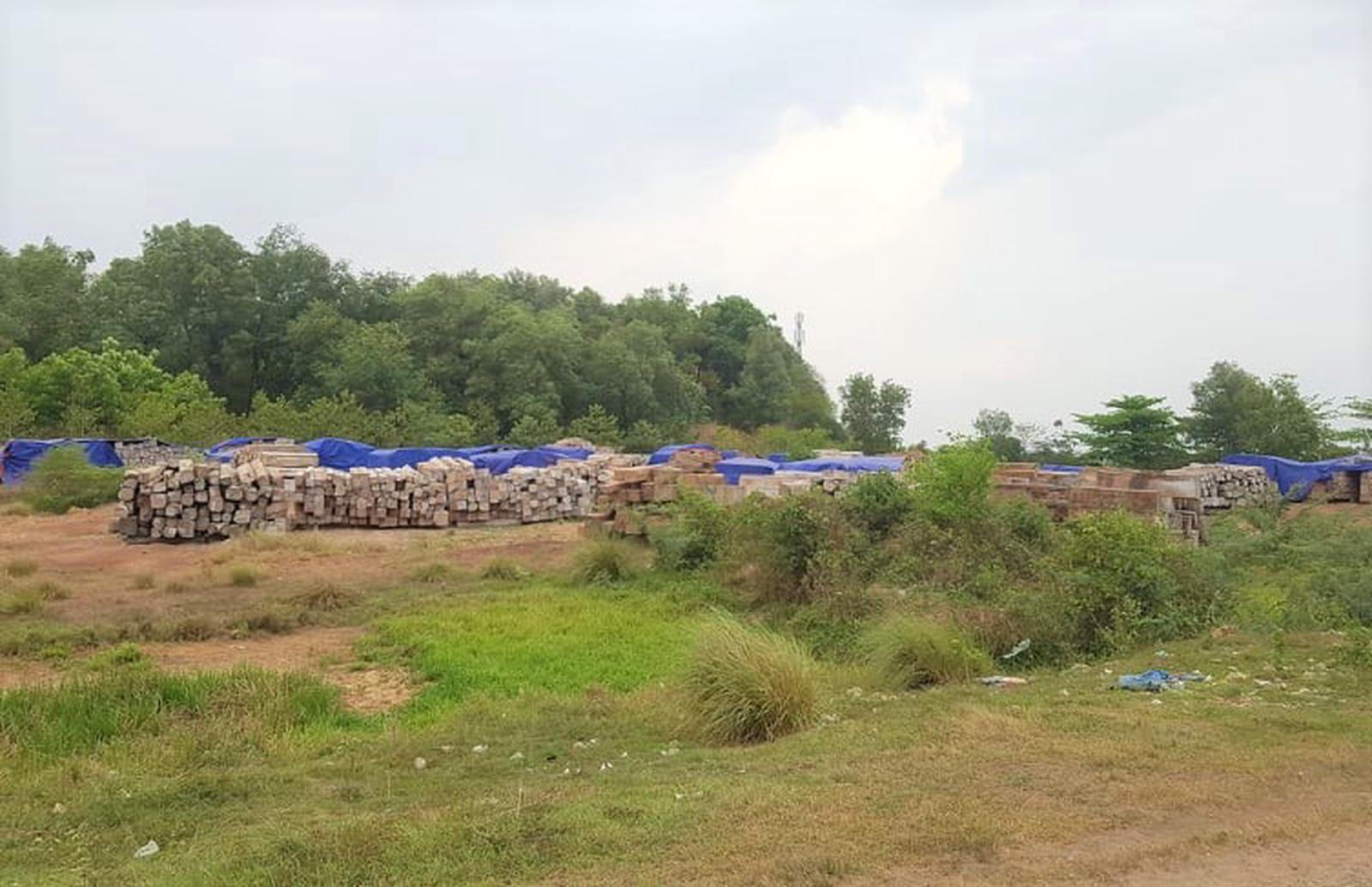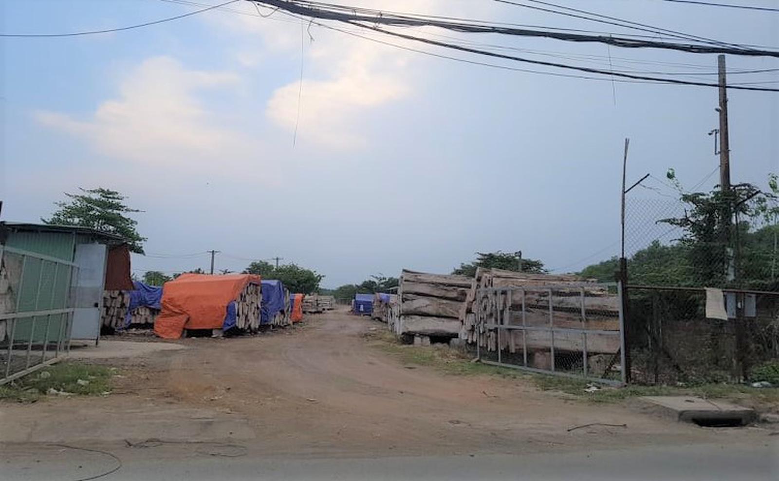Nhiều khu đất thuộc công viên bị chiếm dụng trái phép để làm bãi chứa gỗ, bãi container... Ảnh: TN
