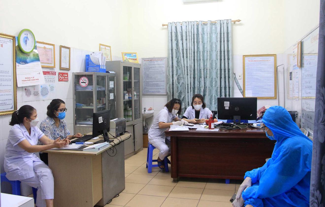 Đội ngũ y, bác sĩ Trạm Y tế phường Cẩm Bình (TP Cẩm Phả) đang thực hiện rà soát, truy vết các trường hợp có liên quan. Ảnh: TTTT