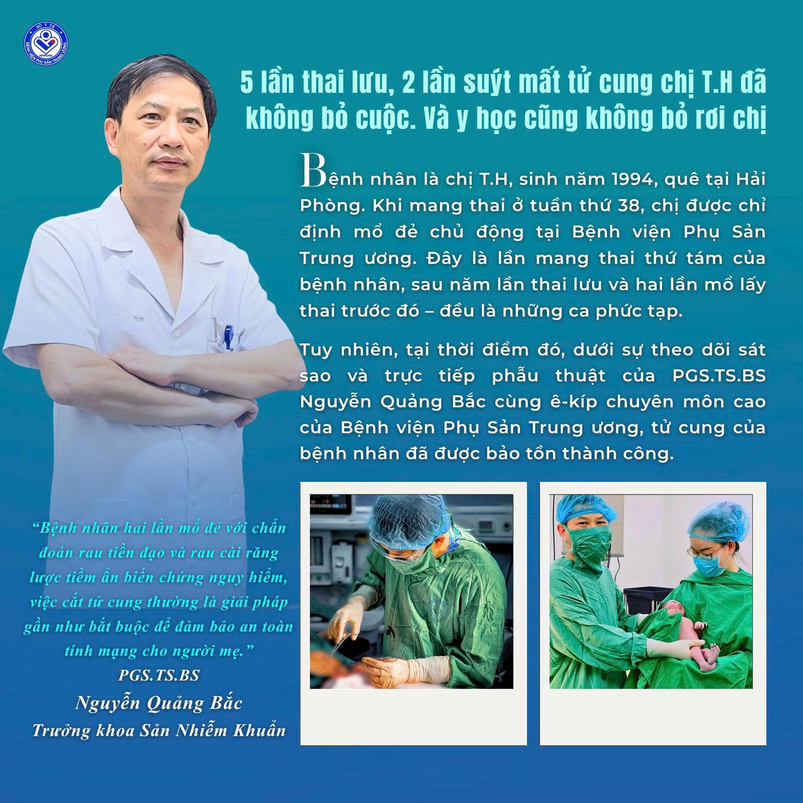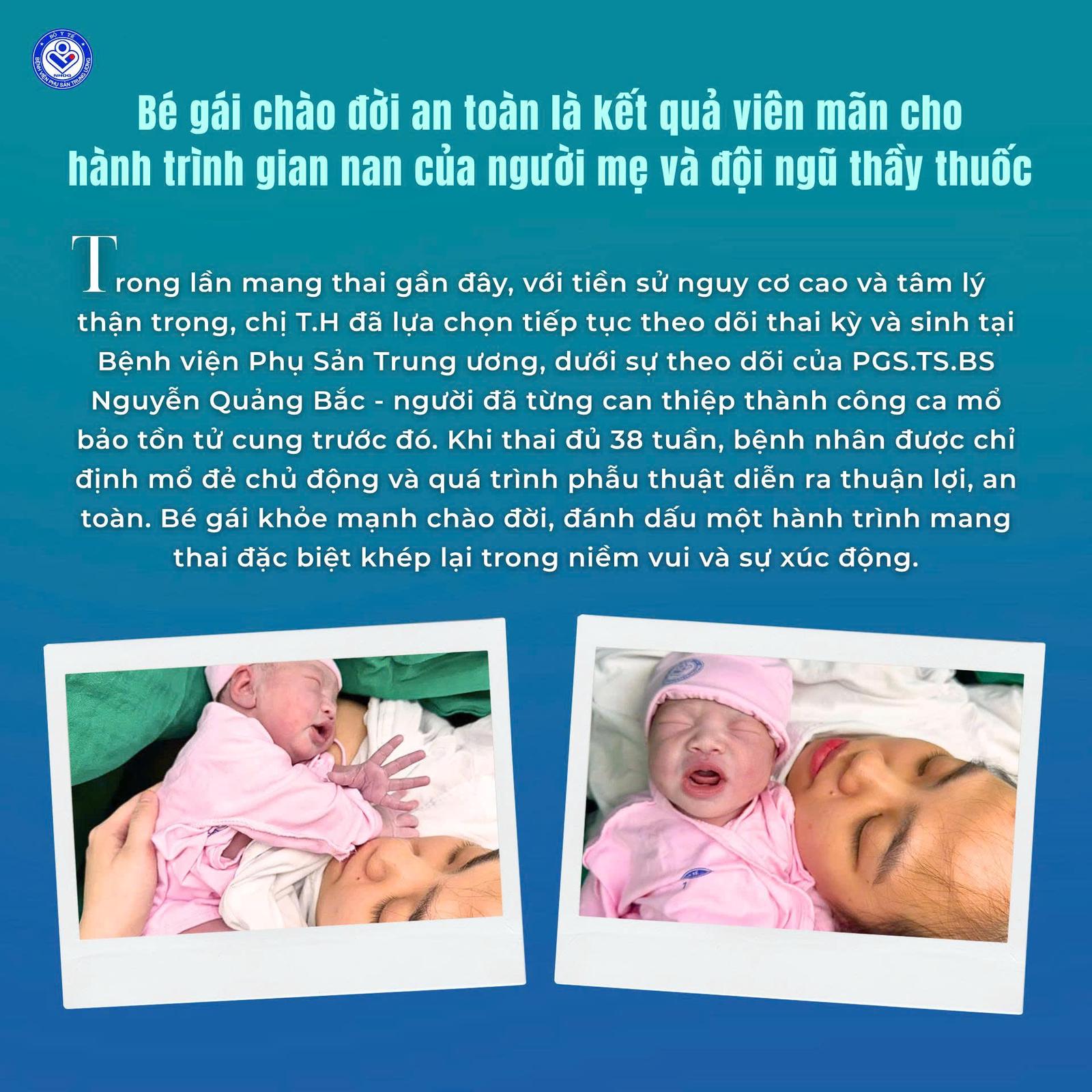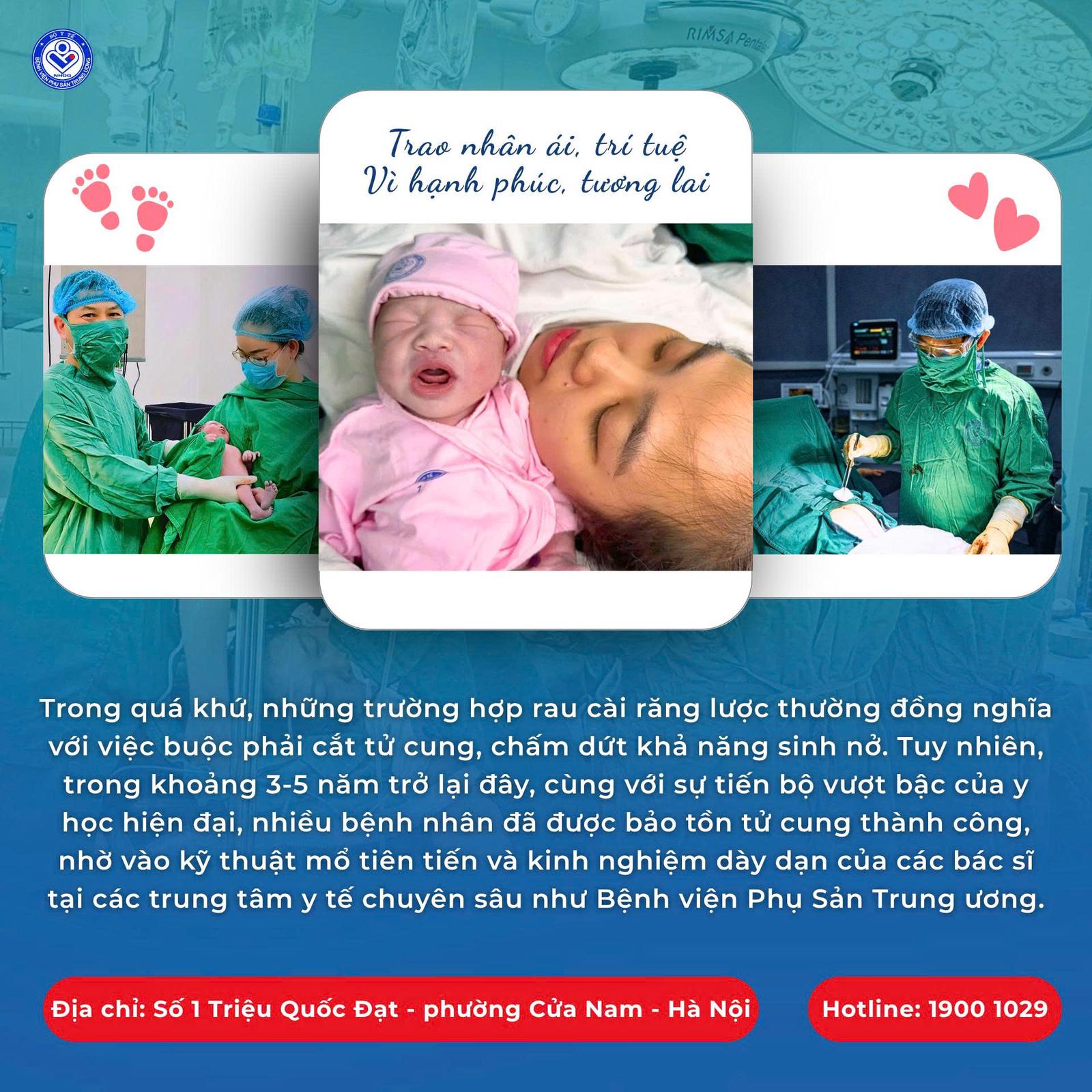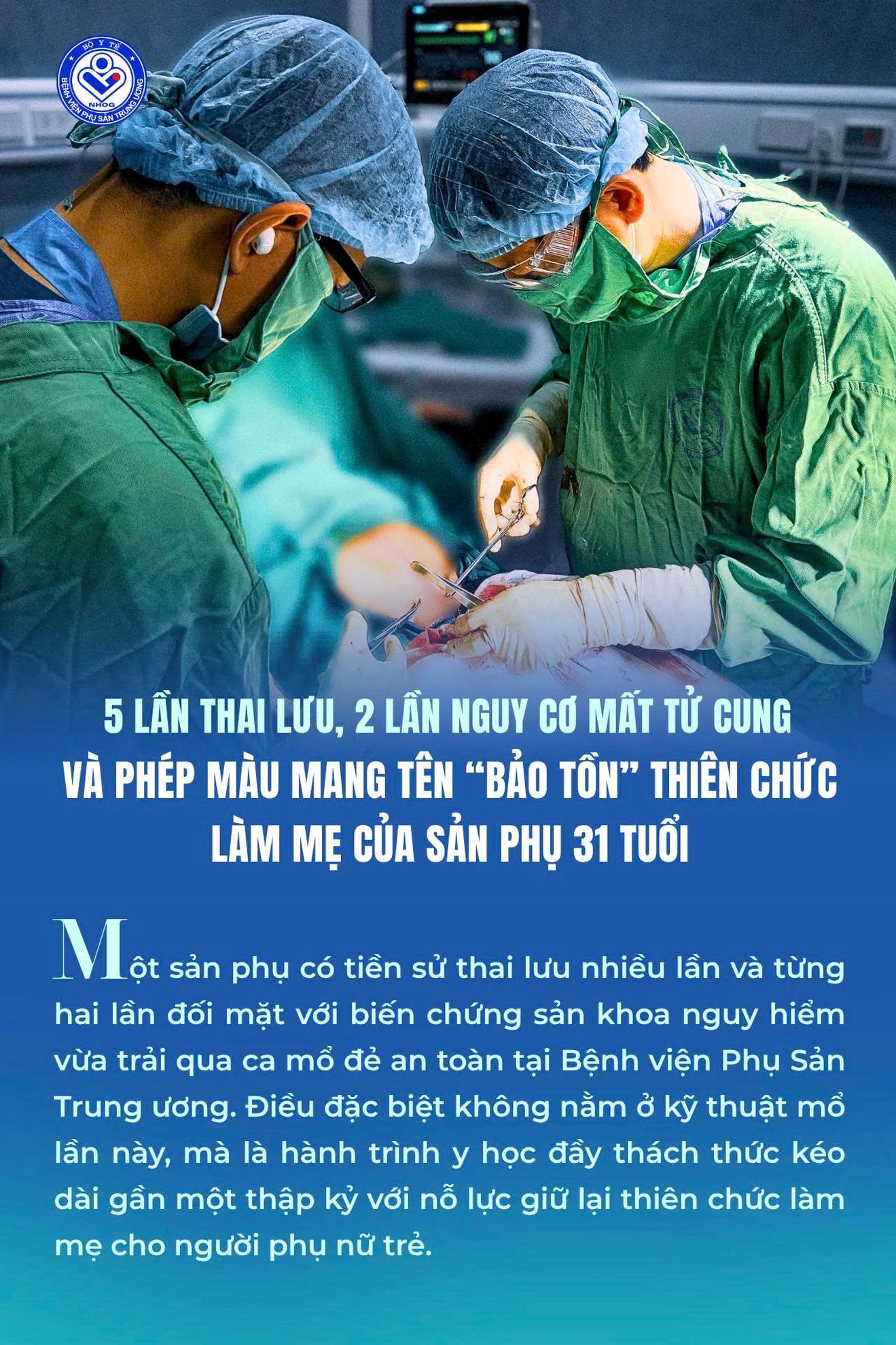 Bệnh viện Phụ sản Trung ương vừa chỉ định mổ đẻ thành công ca bệnh 5 lần thai lưu, 2 lần nguy cơ mất tử cung để " bảo tồn" thiên chức làm mẹ của sản phụ 31 tuổi.