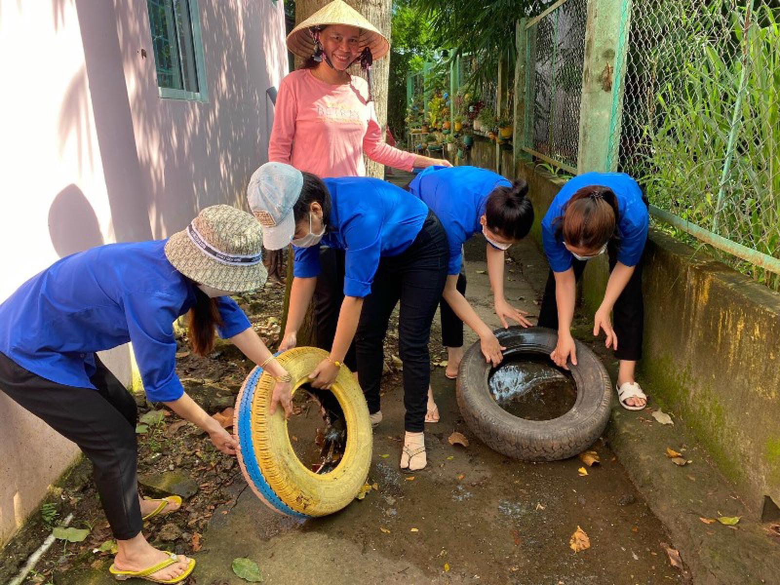 Các bạn trẻ đoàn viên thanh niên ra quân dọn vệ sinh, phòng, chống dịch bệnh sốt xuất huyết. Ảnh: Nguyên Dũng